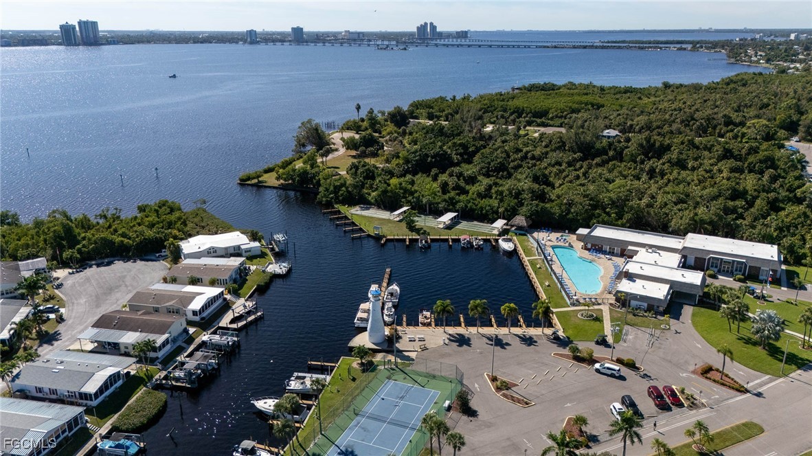 24x28 TIKI HUT in the back yard!!! FURNISHED!!! Located in Old Bridge Village CO-OP with NEW RESORT TYPE Pool!!!!!! This two-bedroom two bath home with cathedral ceilings and extra wide hallway is the definition of one of a kind!! The 13-year full time residents have meticulously taken care of this home inside and out. This unique property is loaded with updates. Welcoming you with curb appeal is a hand-hammered copper bird bath, matching copper rain chain, and Caribbean stone with engraved address is just the start of what makes this property special. Located in the much-desired Dog Patch pet section of OLD BRIDGE VILLAGE CO-OP you'll find the extra-large fenced in lot where LARGE dogs are welcome (no weight limit). The 12x15 Lani includes acrylic transom windows and a split air-conditioning system, and to make daily chores easy there is a Dyson vacuum system. Custom Cover Roof system with transferable warranty. New carport with insulated panels and LED lighting, and two-part epoxy driveway installed by True Grit Coatings. Both baths updated by Bath Fitters. Newer stainless steel kitchen appliances with Granite Counter tops. Tankless Water Heater system. Newer air conditioner with bi-annual service agreement with Custom Cooling. Tiki Hut 24x28 with 16-foot-high ceiling constructed by Native American Chickee Huts includes: All outdoor furniture, Flat-top Pit boss grill, 24-inch Oscillating Fans, Gas Fireplace and 55-inch TV. This property is located in desirable OLD BRIDGE VILLAGE CO-OP (OBV) WITH GULF ACCESS LOCATED IN NORTH FORT MYERS and provides an 81 slip Marina and BOAT & KAYAK launch. As a resident owned community OBV has a 24-7 GUARDED GATE for your SAFETY. The Co-op has a five-acre park with grilling stations/fishing pier right on the Caloosahatchee River, everything you need to enjoy what Florida has to offer. There are two social clubs that you can be part of; The Social Alliance offers a short meeting every Saturday with coffee and donuts. At each meeting you will begin to meet your new OBV family, and learn what activities are happening in the park such as Moola, Bingo, picnics at the park, water aerobics, Pickle Ball, tennis, etc. The Yacht Club holds an annual Shipwreck party, the Commodore's Ball, and monthly Boat-to-lunch excursions. No worries, you don't need a boat to join in the fun, you can always meet at the destination by car! OBV is packed with ACTIVITES and AMENITIES AND SO MANY MORE THINGS TO DO all filling your days with fun and laughter! OBV is located directly across from downtown Fort Myers.