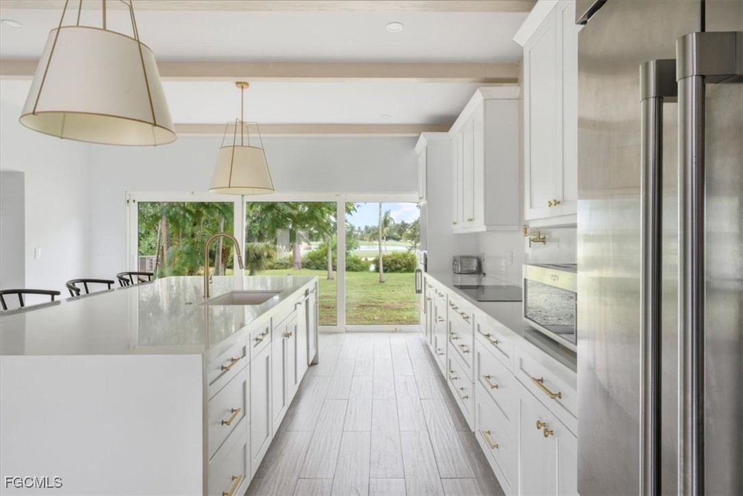 Featuring 3 spacious bedrooms, 2 elegant bathrooms, and an open-concept layout with high ceilings and stunning gourmet kitchen with a large waterfall island and top-of-the-line appliances. Enjoy a spa-style master bath with a freestanding tub and double rain showers. The outdoor area is a tropical retreat with custom built BBQ summer kitchen, perfect for entertaining or relaxing sunsets by the lake and Golf course views. Minutes from beaches, fine dining, shopping, marinas, water sports. Just 40 minutes from Naples Airport and under an hour from South Florida International- Easy access for residents, visitors and investors!