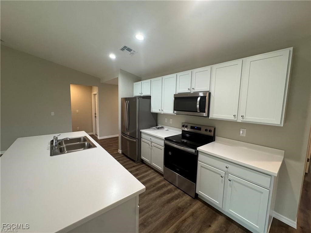 NEW CONSTRUCTION FOR RENT, WITH ONE MONTH FREE!! BRING ALL OFFERS! ALL OFFERS CONSIDERED. INCLUDES WASHER AND DRYER, TECH PACKAGE WITH CAMERA DOORBELL, MONTHLY A/C AIR FILTERS, AND SMART LOCK. TECH FEE INCLUDED. This stunning brand-new 4 bedroom, 2 bath, 2-car garage home offers 1,809 sq. ft. of open living space. Inside, you’ll find high ceilings, luxury vinyl plank flooring, and a bright open floor plan, with a fully fenced backyard. The all new gourmet kitchen features quartz countertops, stainless steel appliances, a large island for entertaining, and pantry. The spacious master suite includes a walk-in closet, dual sinks, and a beautifully tiled shower, while three additional bedrooms share a full bath. This home also offers a dedicated laundry room with new washer and dryer, hurricane shutters, and peace of mind being outside of a flood zone. Situated close to shopping, dining, and entertainment, Cape Coral is consistently ranked high for quality of life, retirement, outdoor activities, and overall livability—making this an excellent place to call home.