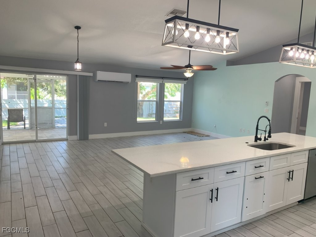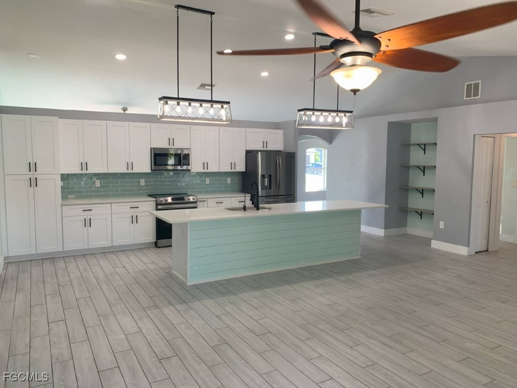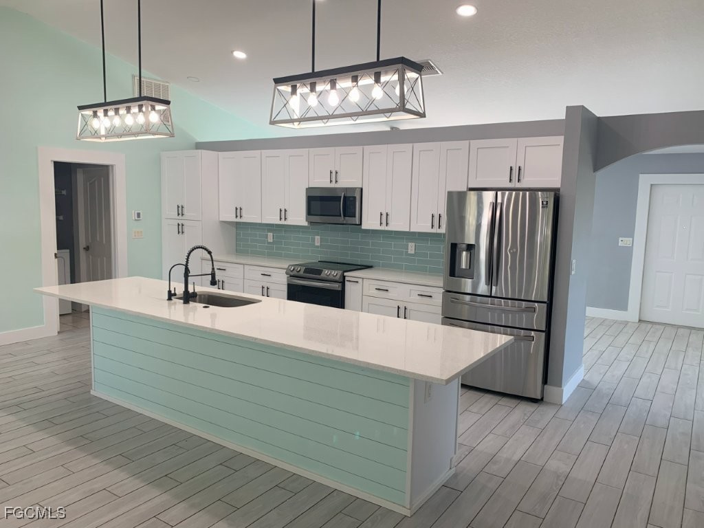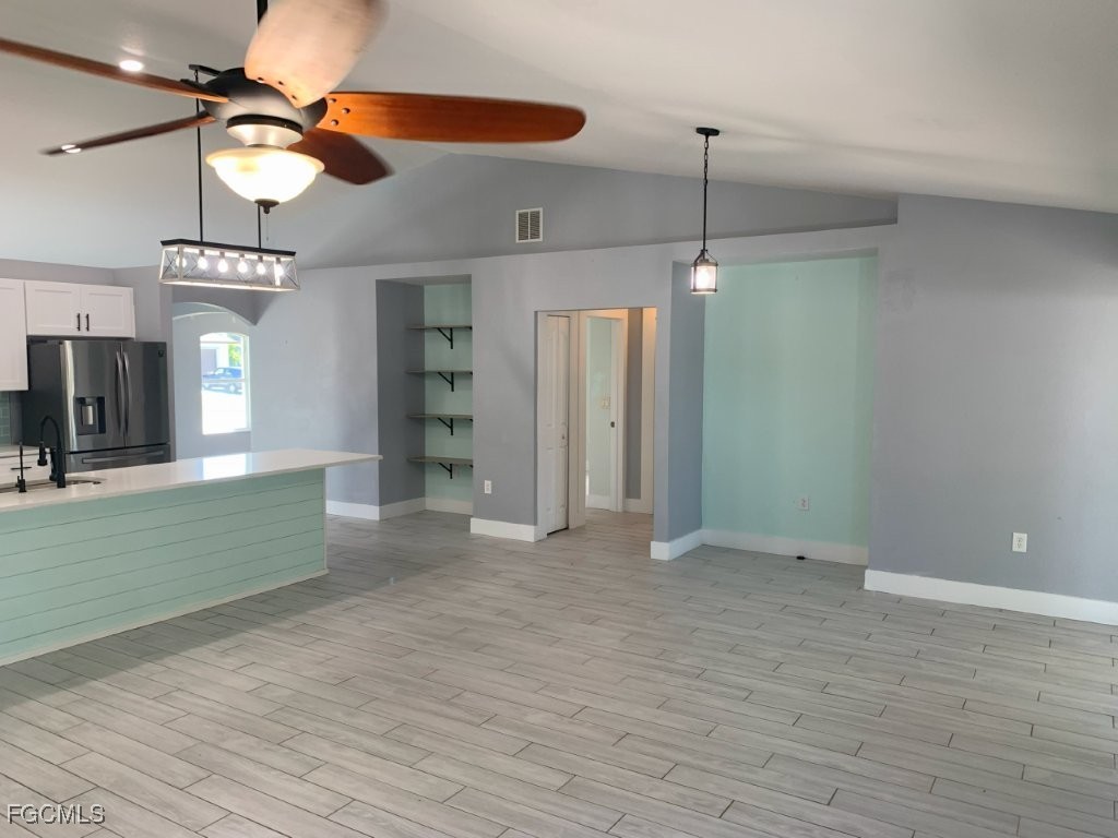 Enjoy SWFL living at its finest in this beautiful Cape Coral home! With a new roof, AC, kitchen, fence, & tiled flooring throughout as of 2023, this amazing home features 2017 sq. ft under air, 3 bedrooms, a den/bonus room, separate family & living rooms, a built-in entertainment center, a huge kitchen with massive island & stainless steel appliances, a 2-car garage, extended driveway, ceiling fans throughout, lots of storage and much more! The primary bathroom has a step-in shower & separate soaker tub! Enjoy the large screened lanai & private fenced backyard with lovely pavers & trees! All warranted kitchen & laundry appliances, excluding the ice maker (for convenience only). Currently on a well system, with the switch to city water taking place eventually at the Owner's expense. Tenant to pay all in-home utilities and handle lawn care. Pets & smoking/vaping strictly prohibited. Great, quiet location near Pine Island Road, where you'll find shopping, dining, entertainment, grocery, schools & beyond! Available now! The Application Fee is $100 PER ADULT. One-time lease administrative fee of $225. Please note that properties within an Association may have an additional application process, will be subject to an additional fee(s) and an additional approval process.