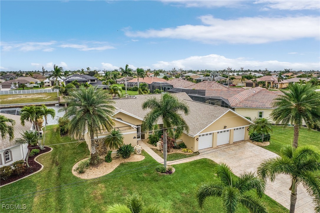 Welcome to your dream waterfront oasis! This spacious 3-bedroom, 2-bathroom, den/flex space, with a 3-stall Garage, is ideally situated on a Gulf access canal with south-facing rear exposure for the beautiful Florida Sunshine all day! Offering breathtaking water views and a tranquil atmosphere. The living and family rooms provide ample space for relaxation and entertainment. The split floor plan ensures that the master suite is a serene retreat, complete with a master bath boasting a solid surface finish and a large garden soaking tub – perfect for unwinding