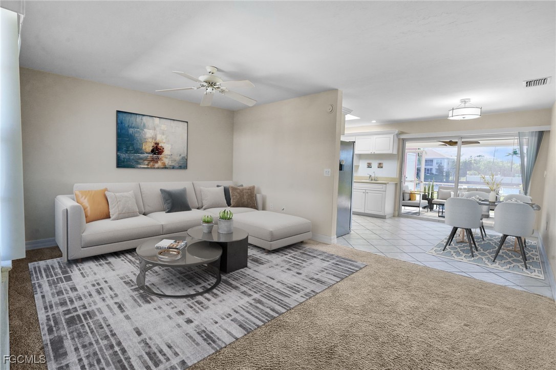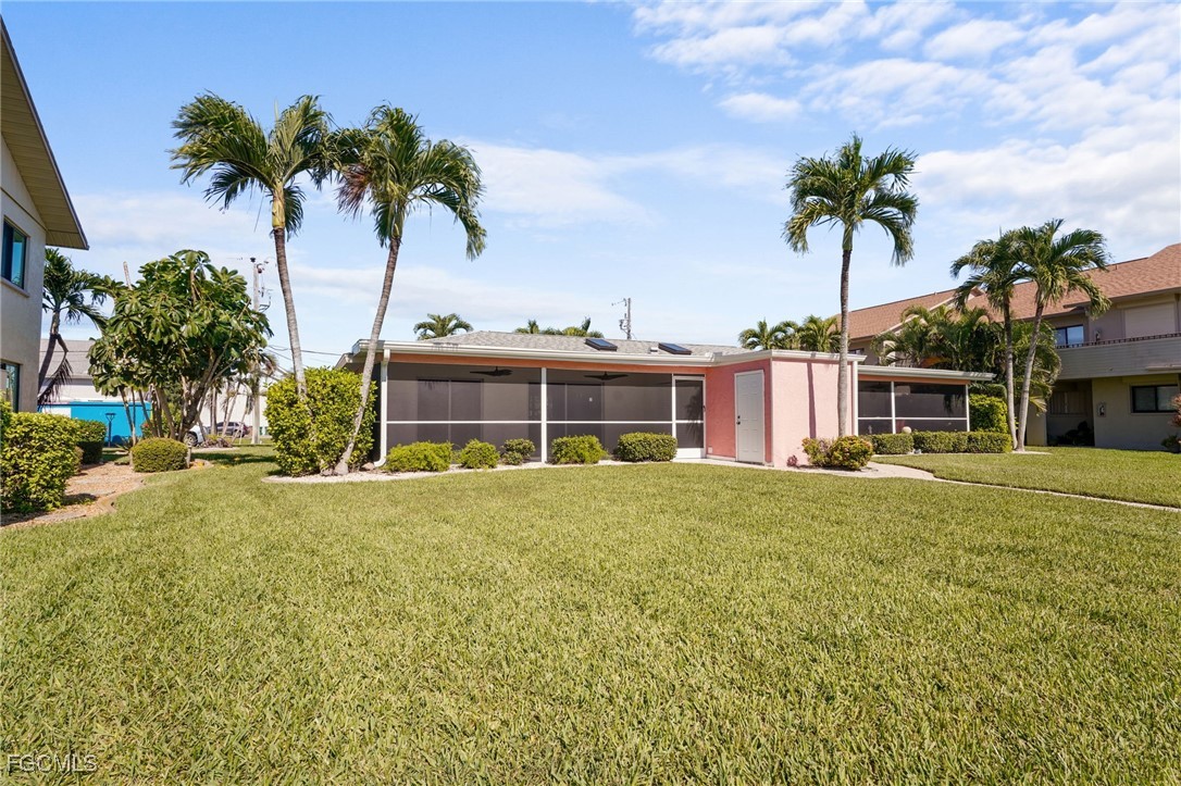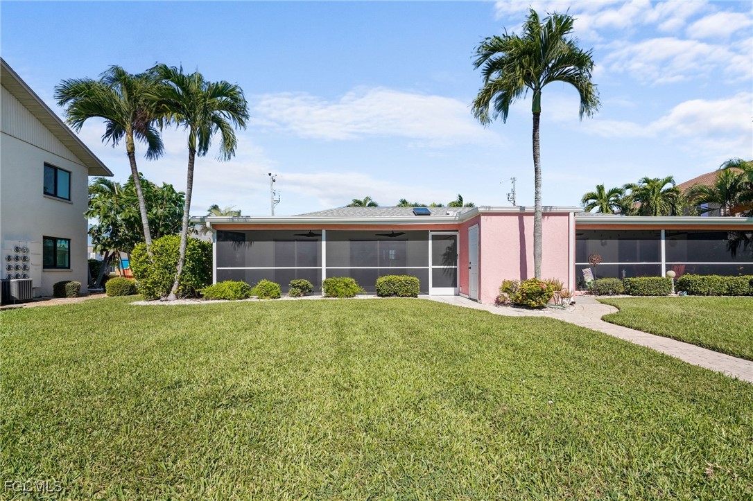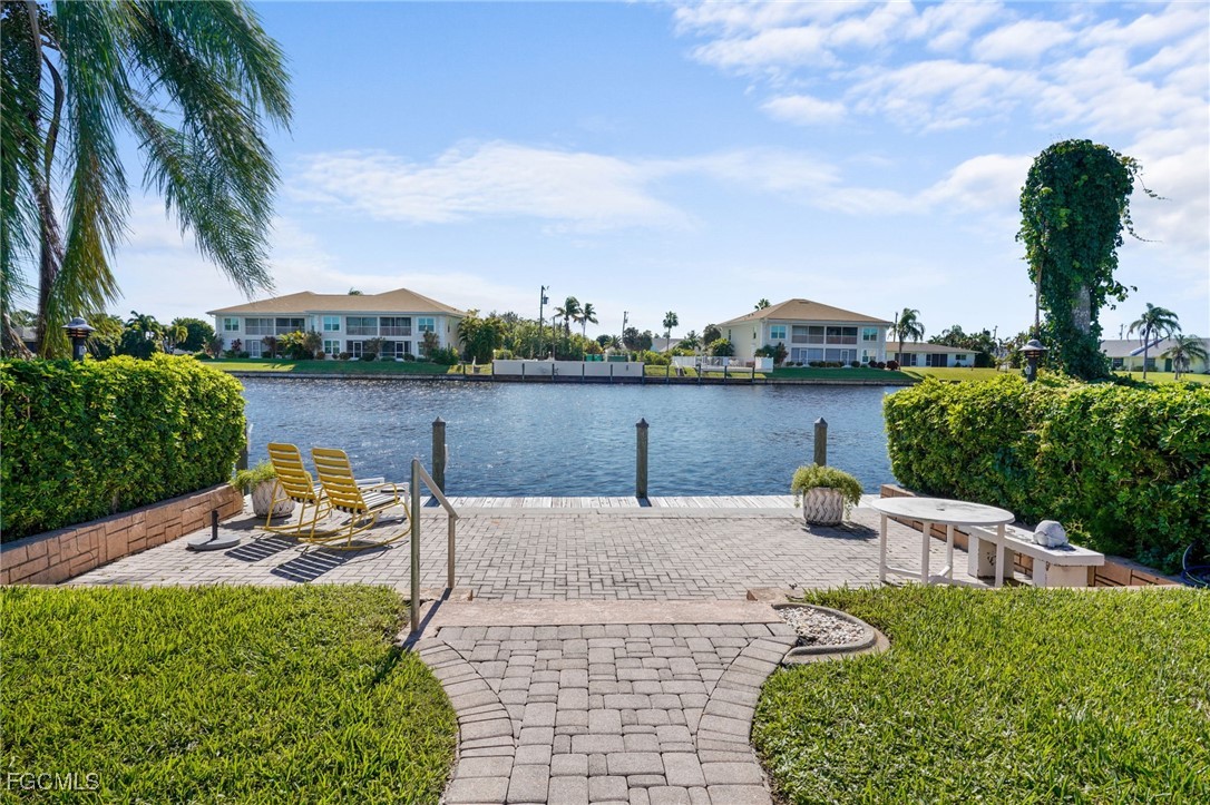 AVAILABLE IMMEDIATELY! GORGEOUS WATER VIEW! Sits on popular Rubicon Canal, 200' wide, saltwater! One bridge to river, dock space for 2-25' boats (ONE EACH UNIT), circular driveway with pavers (two parking places each side), courtyard entrance, large screened lanai and perfect backyard for playing bocce ball, badminton, croquet, .... Landlord pays water, exterior pest and lawn maintenance. Laundry in large lanai. Very comfortable living at convenient centralized location! 1st month, last month and security deposit required. NO SMOKING! No Cats! Dog with approval.