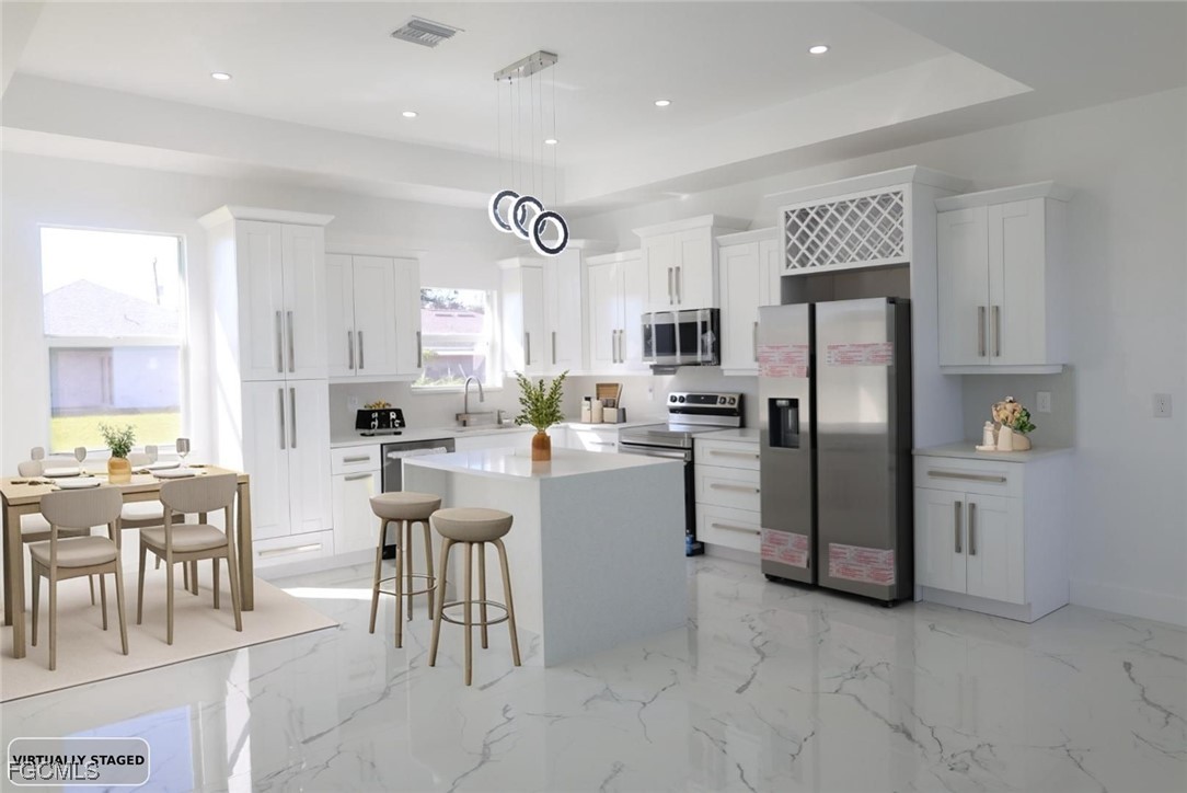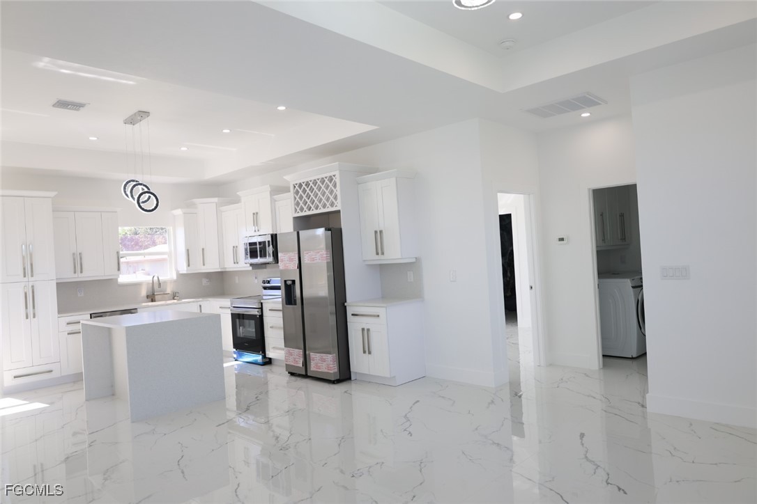 Step into luxury with this brand-new, beautifully crafted home offering 3 spacious bedrooms and 3 modern bathrooms. Designed for comfort and style, this home features an open-concept floor plan filled with natural light, perfect for both entertaining and everyday living. The gourmet kitchen is a true showstopper, featuring sleek finishes, premium cabinetry, stainless steel appliances, and plenty of counter space for culinary creativity. Relax in the elegant living area or retreat to the serene primary suite with a spa-inspired bathroom and LED lighted mirrors that add a touch of sophistication.Enjoy the convenience of a 2-car garage with a stunning epoxy-coated floor and a smart washer and dryer set for effortless living. The backyard offers plenty of space to design your dream pool and outdoor oasis—ideal for gatherings or quiet evenings under the stars. With its modern design, smart home features, and high-end details throughout, this home delivers the perfect blend of luxury, functionality, and future potential. Don’t miss the opportunity to make this exceptional new construction your forever home!