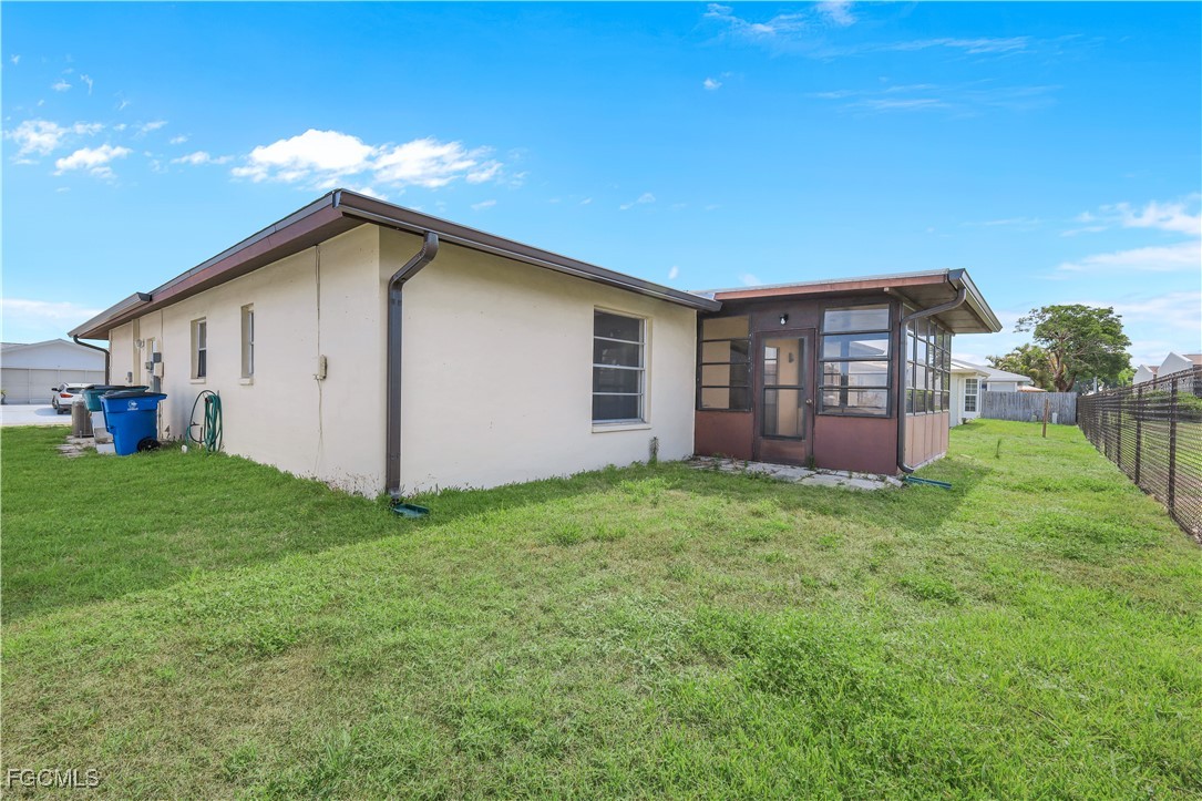 Welcome to the South Pointe South community! Centrally located off Cypress Lake Dr. and McGregor Blvd. just west of Rutenburg Park! This tight nit community is absolutely ideal due to its great location, low HOA fees, No flood zone (no water issues ever), and walking distance to parks and recs, shopping and dining! This 3 Bed/2 Bath solid concrete block home with 2 car garage was built in 1980 and features 1,300 Sq. Ft. under air with an attached enclosed Florida Room. Major updates include NEW AC in 2023, NEW ELECTRIC PANEL IN 2023, NEW ROOF IN 2021, NEW GUTTERS DOWNSPOUTS AND WASHER/DRYER IN 2024. New luxury vinyl plank flooring installed in the bedrooms in 2025. Repainted Interior, epoxy garage floor and new vanities and faucets in 2025. The HOA fees are only $62 a month and include a heated pool overlooking the relaxing pond and native wildlife, community room with lots of activities, ping pong, billiards, library and shuffleboard. During heavy rains the drainage is amazing and we have never had any water issues and no flood insurance is required. This property features easy maintenance, with an open floor plan, split bedrooms and enclosed Florida Room. Property is also on city water and sewer with county taxes only and located in the South Zone school District. Offered at an exceptional price to meet todays market demands! Property is move in ready and ready to be shown today!