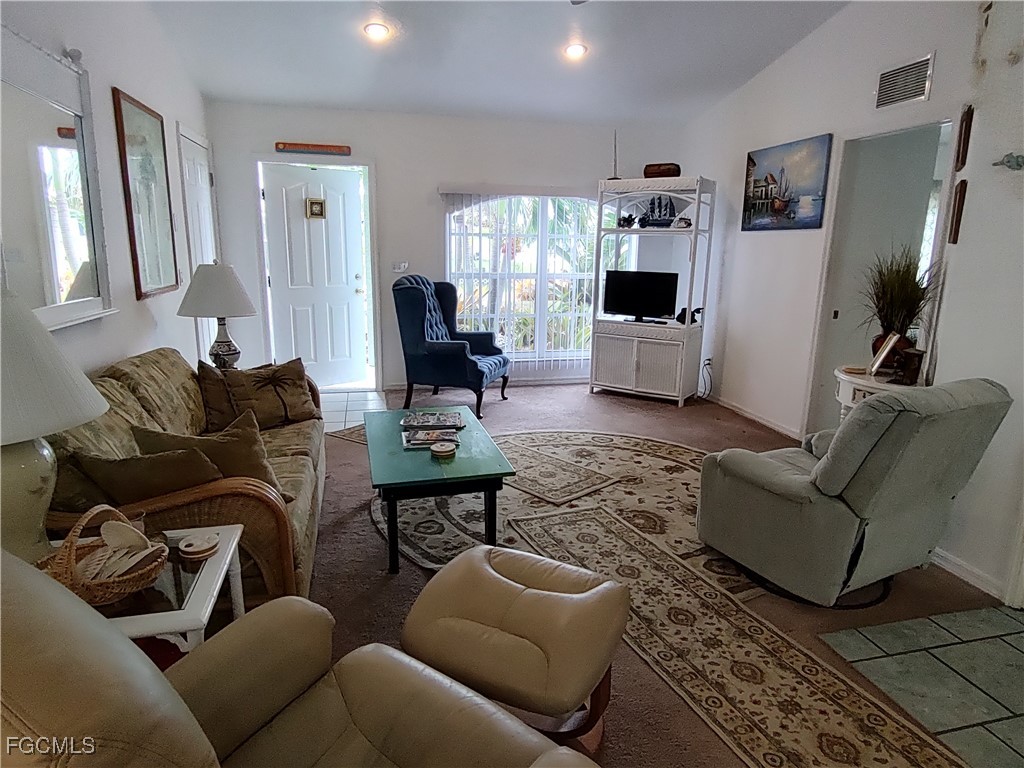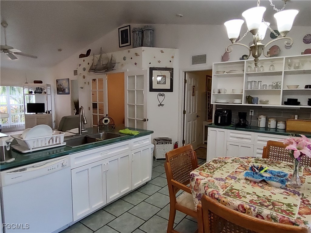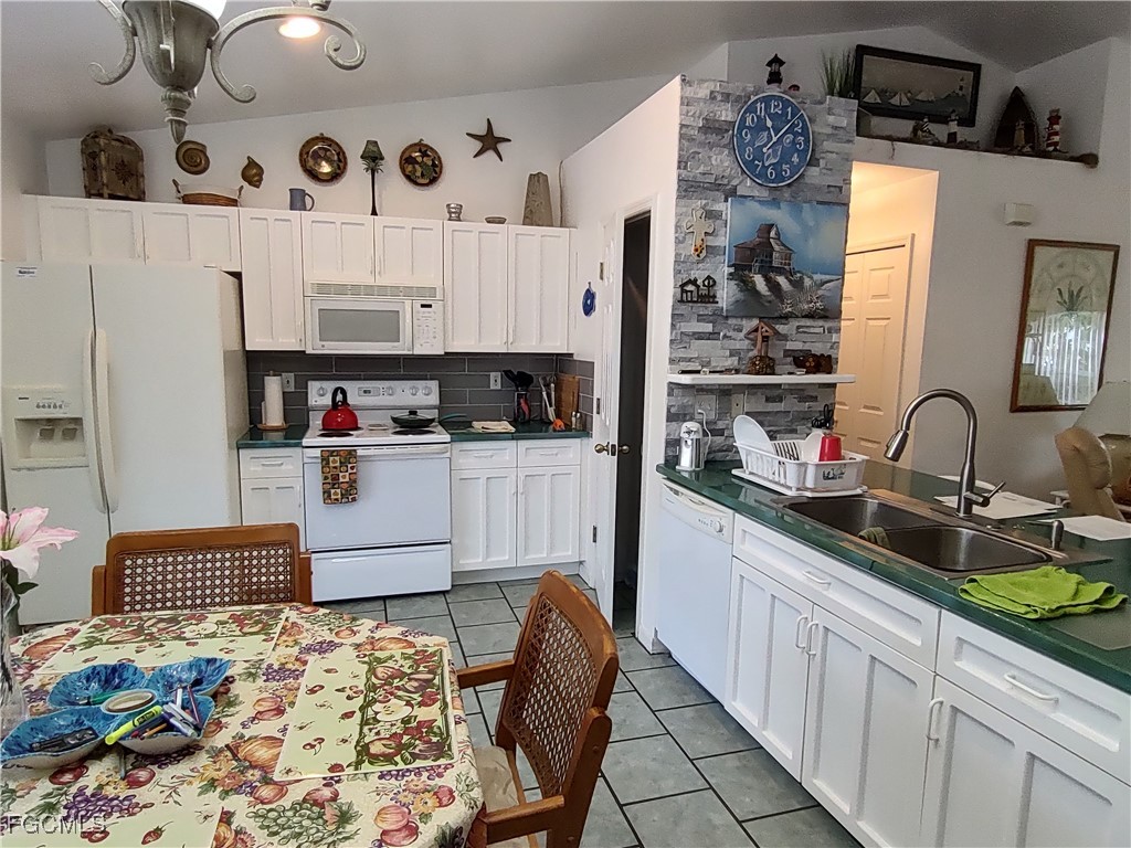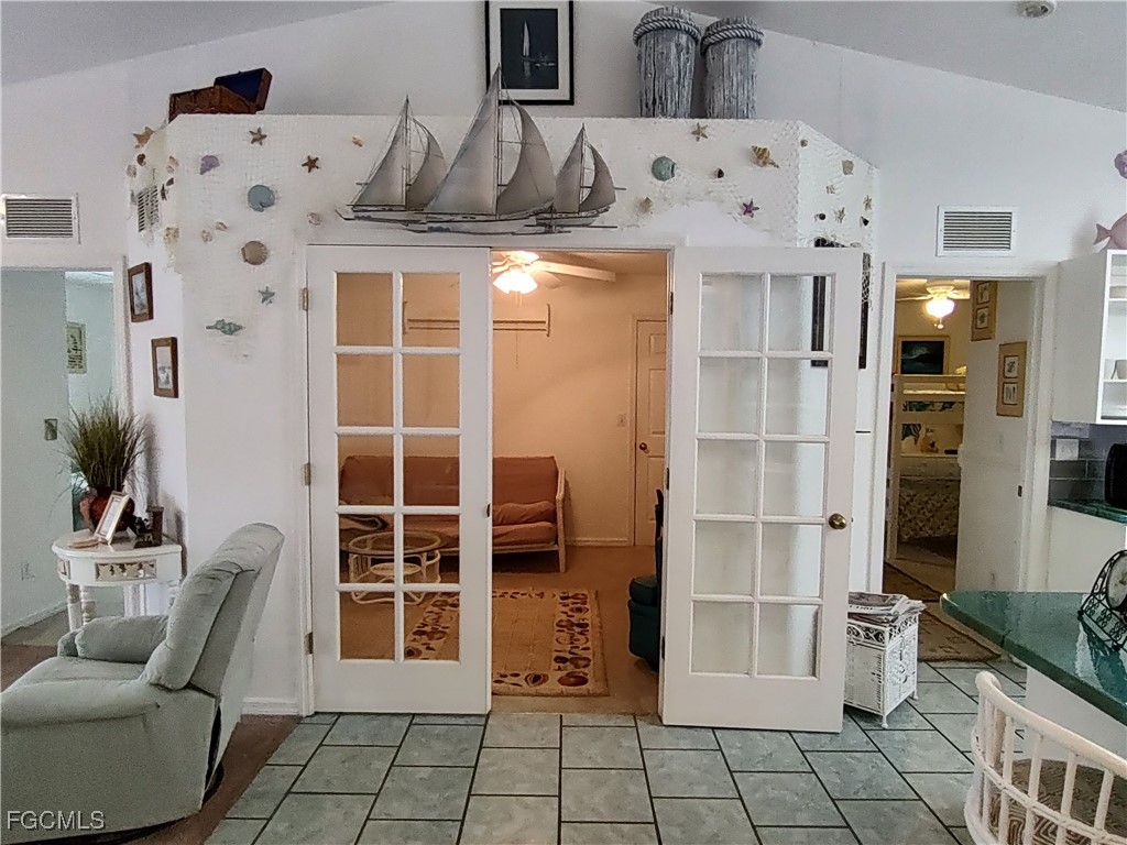 This charming coastal style home will delight you beginning with exceptional terraced landscaping in tropical style, including a boardwalk extending around the side of the house for easy access to a/c and water system. Entering the living area, you'll notice a lovely split bedroom floorplan and center stage is the Den with French doors. A jack-n-jill bathroom connects both guest bedrooms. Primary bedroom includes walk-in closet and ensuite bath with shower. Beautiful custom designed countertops enhance the breakfast bar and eat-in kitchen with attractive built-in shelves and cabinetry in the dining area for display and extra storage. Step out into the screened lanai and enjoy entertaining with the huge open stone patio. The garage features lots of great built-in storage for all your projects and stuff. Great location with schools and parks nearby and just minutes to shopping. Furnishings are negotiable.