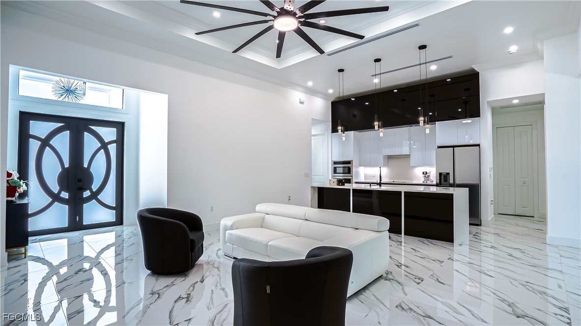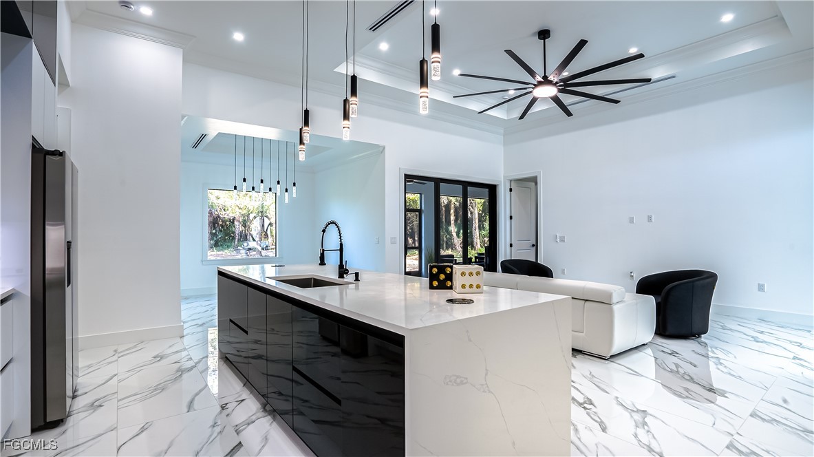 Exceptional property located in the desirable Los Estates area, just 1 minute from the Naples Wedding Barn and 6 minutes from Seven Food Market. This stunning home sits on 2.27 acres, offering privacy, open space, and the perfect opportunity to build a pool or create your dream outdoor living area. The residence features 2,089 sq. ft. of living area and 3,031 sq. ft. total construction, with 4 bedrooms, 3 full bathrooms (2 en-suite), and a 3-car garage. Built with quality and attention to detail, the home includes impact-resistant windows and doors, high ceilings, and extended air vent grilles for improved air circulation and a refined finish. The modern kitchen boasts an elegant black-and-white cabinet combination with large drawers, upper black cabinets, luxury finishes, and a hidden range hood integrated into the cabinetry for a seamless design. The primary suite offers two spacious walk-in closets, a large vanity, and a relaxing bathtub for ultimate comfort. Enjoy Florida living with a large screened patio and outdoor kitchen, ideal for entertaining family and friends. A perfect blend of comfort, luxury, and location — this Los Estates home is ready to impress.