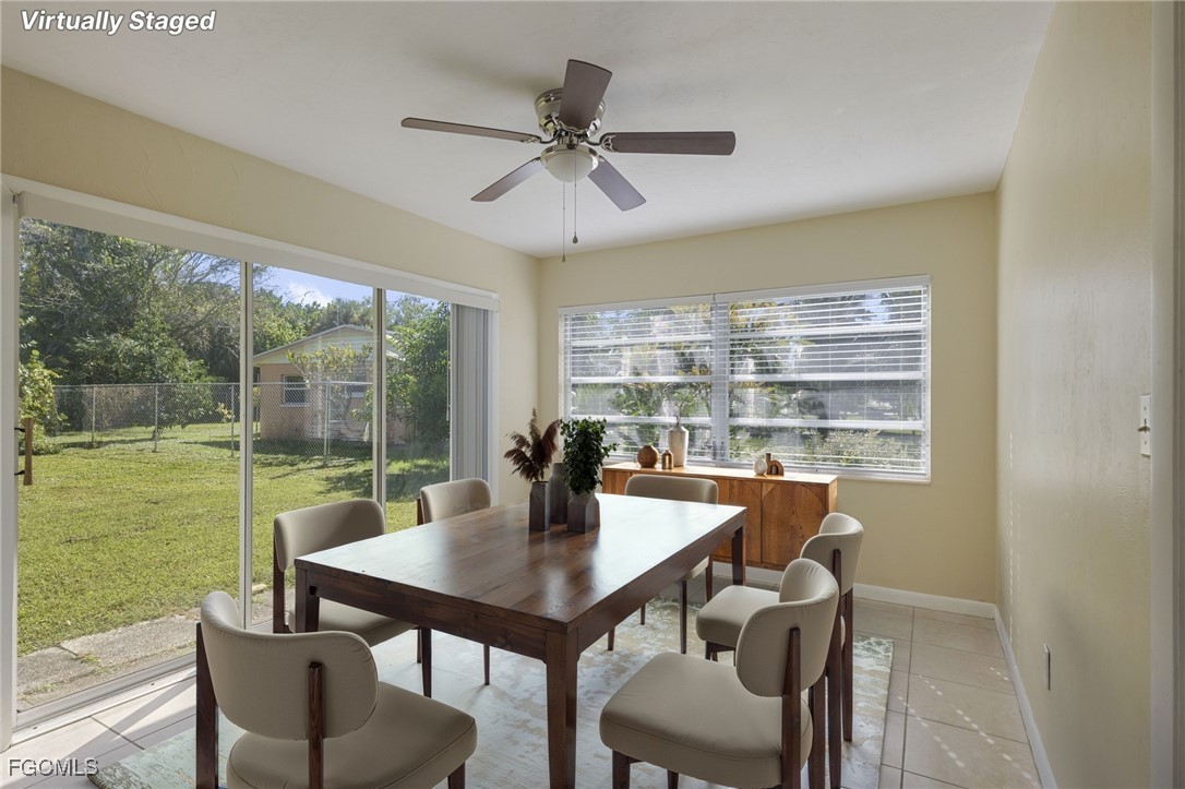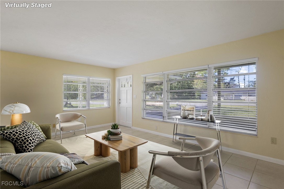 Nestled in the heart of Lehigh’s original “old town” neighborhood, this delightful home blends comfort, charm, and convenience on an oversized corner lot shaded by beautiful mature oak trees. From the moment you arrive, the inviting curb appeal and peaceful setting make a lasting impression. Step inside to discover a bright, open floor plan with plenty of natural light and tile flooring throughout. The spacious living and dining areas are thoughtfully separated by a stylish room divider, creating a perfect flow for everyday living or entertaining guests. The kitchen has been recently refreshed with new cabinets, a new refrigerator, and updated window blinds, offering both functionality and style. The laundry room includes extra storage space and a handy workbench, adding to the home’s practical layout. This property also features several important updates, including a new roof installed in 2018 and all-new electrical wiring, giving you confidence and peace of mind for years to come. Outside, the large corner lot is a true highlight, filled with character and shaded by grand oak trees, ideal for enjoying the outdoors or simply relaxing in your private retreat. With its combination of modern upgrades, classic charm, and an unbeatable location just minutes from Lehigh’s shopping district, this lovely home is move-in ready and full of potential. It is the perfect place to enjoy a relaxed Florida lifestyle in a quiet, established community.