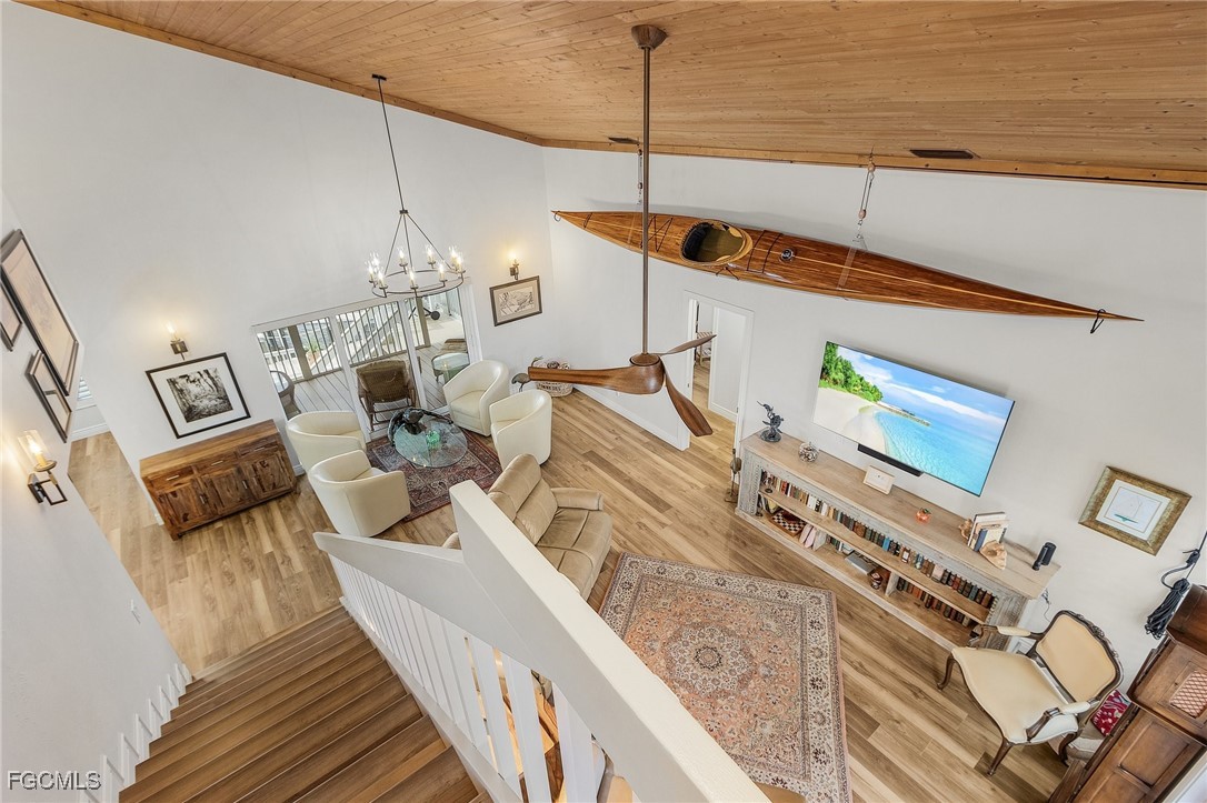 SAILORS AND POWER BOATERS WANTED!!! This stunning and completely remodeled waterfront three-story pool home is a water enthusiast’s paradise! Be on the ICW or the Gulf of Mexico within minutes, with no bridges or locks to navigate. The extensive waterfront is comprised of a large 14’ x 40’ slip, and an 8K lb. covered boat lift. There is a large custom designed small craft floating dock with a hinged kayak launch and a safety assist bar for easy access. You will enjoy serving cocktails and watching the sunsets from the custom Tiki bar with sink, bar refrigerator, and light filtering / privacy screens. The driveway has a large concrete RV pad with twin 50 amp service, and water & sewer connections. The professionally landscaped grounds are designed to be low maintenance. The home has all new exterior Hardie plank & shingle siding, a 1.5” Snap-lock Standing Seam System aluminum roof (no exposed screws), with a 25 year warranty, new facia, soffits, & gutters, new impact rated vinyl insulated Low-E, Argon windows, doors, and a custom made front entry door & sidelights with an ocean dune sea grass design. There is a new HVAC system (2024) with a variable speed high efficiency air handler, with both a Reme Halo & Fresh Air UV air purifying units, an exterior cargo lift, and a resurfaced pool, with a new 2 story panoramic lanai enclosure. The ground floor includes approx. 912 sqft of two air conditioned shop spaces with impact rated insulated French doors & windows. One is used as a wood shop with sound proofed 8” interior walls and a sound proof closet for the compressor. The flooring has comfortable rubber tiles, and there is a storm rated electric roll up garage door & an electric roll up insect screen. There are (4) dedicated 20 amp circuits for power equipment. The 2nd shop/craft area is being used as an artist/quilt studio and includes a ½ bath and LVP flooring. The handicap accessible interior boasts new LVP flooring throughout, large profile base & door moldings, plantation shutters and custom shades, plus a complete alarm system including sheds, which also monitors for fire, smoke, and motion in the house & shops. The chef’s kitchen is custom designed with all new custom cabinets, new appliances, double wall oven, induction cook top, outside vented exhaust fan, center island, and a butler’s pantry, all with stunning solid surface stone countertops. The laundry room includes a full-size freezer & utility sink. The spacious & private master suite is upstairs with a large West facing balcony overlooking the canal where you can watch the evening sunsets with views of San Carlos Bay and Sanibel Island. The 4th story Cupola has unobstructed breath-taking distant views of Sanibel. This exquisite Pine Island home is on the Southern tip of the Island, and must be viewed to truly appreciate every finely executed detail. Please view the video to see how easy it is to launch your kayak and not get wet!