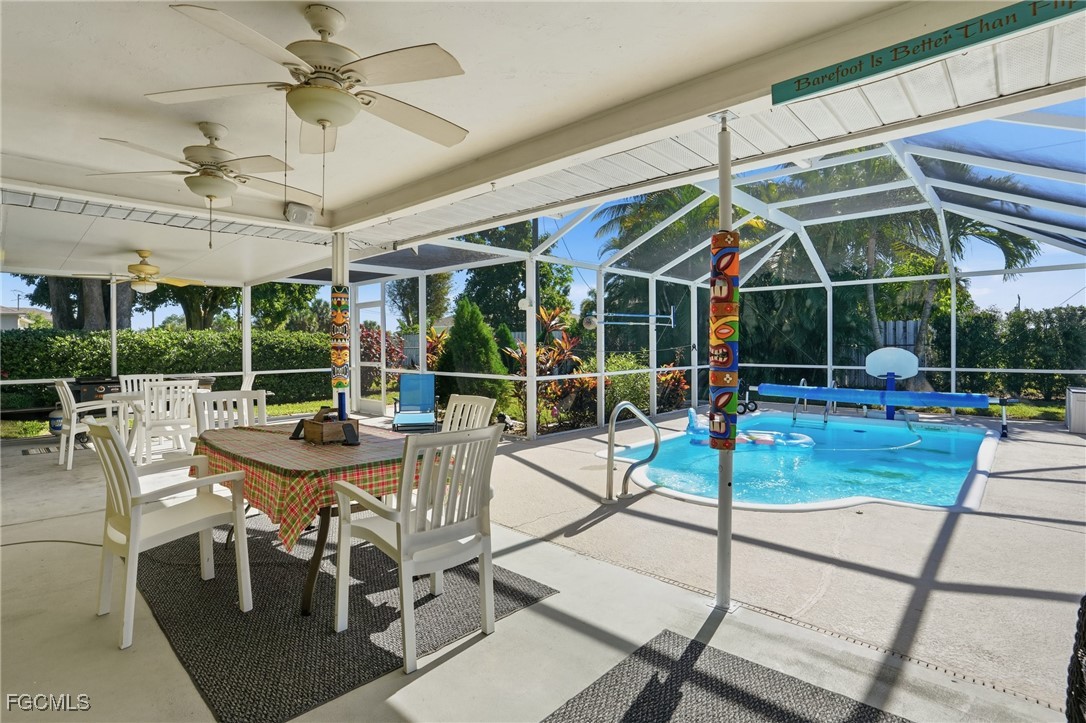 This well-maintained Cape Coral pool home at 1802 NE 22nd Terrace offers comfort, style, and convenience in a prime location. The bright, open layout flows seamlessly to a spacious lanai, perfect for relaxing or entertaining by the sparkling pool. A convenient pass-thru window from the kitchen enhances indoor–outdoor living and makes hosting a breeze. The home’s contemporary finishes create a clean, inviting atmosphere throughout. Step outside to an exceptionally large, fully fenced backyard—providing privacy and endless possibilities, from gardening to play areas or future outdoor additions. With its ideal location, generous outdoor spaces, and thoughtful design, this property is truly an exceptional find.