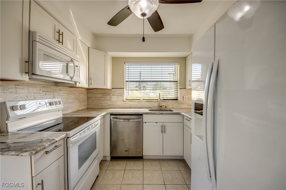 Welcome to the Courtyards of Cape Coral. Centrally located community where comfort meets style. This beautifully updated 2-Bedroom, 2 Bath Condo offers 982 Sq. Fe. of modern living with a sleek, contemporary vibe throughout. Step inside to find luxury vinyl tile flooring, a bright open layout and a modern kitchen with Granite countertops-perfect for evet day living and entertaining. Enjoy the large heated Pool, clubhouse and well kept grounds-all with affordable association fees. Near shopping, dining and parks.Don't miss this stylish, move in ready condo in one of Cape Coral's most desirable friendly communities.