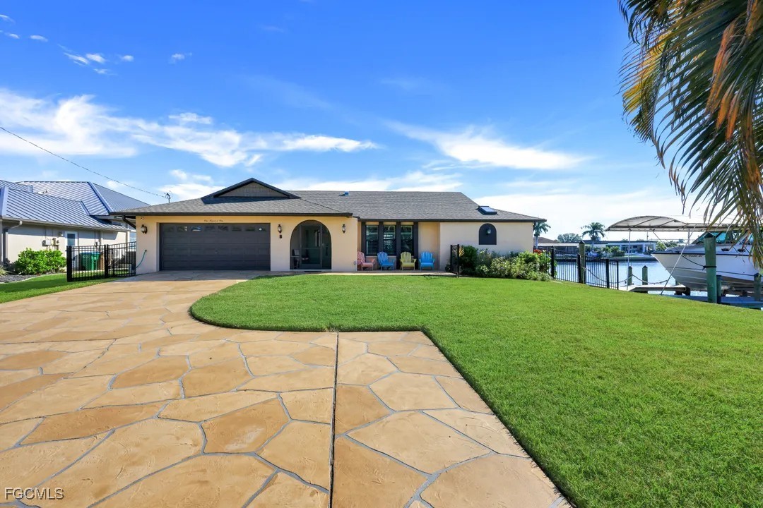 A Boater’s Paradise in an Upscale, established Waterfront Community with Many new homes. Perfect for the avid boater seeking an upscale coastal lifestyle, this property sits in one of Cape Coral’s most desirable waterfront areas—surrounded by newly built luxury homes and offering unmatched access to world-class boating, dining, and recreation. Enjoy effortless boat trips to Tarpon Point and Cape Harbour, where you’ll find outstanding waterfront restaurants, marina amenities, and entertainment. Excellent fishing waters are just minutes from your dock. Outdoor enthusiasts will also appreciate being able to walk to Rotary Park, featuring scenic walking trails, exercise classes, a butterfly house, and a popular dog park. This rare, one-of-a-kind lot is situated at the intersection of two 200-ft wide canals and offers over 240 ft of waterfront—an extraordinary setting with room for all your boating needs. Accommodate a 54' Hatteras, plus a 10,000-lb lift for your Boston Whaler Outrage, with plenty of space for additional watercraft. The home itself is impeccably maintained and features valuable upgrades: New roof (2022) New A/C (2024), boat canopy 2022 Impact windows (2019), impact front door, accordion shutters at patio with all pocket sliding doors. Create your own "fishing" photo wall from endless catches at the dock and nearby island of Sanibel, Captiva and Fort Mers beach and Boca Grande. Relax in your large solar heated pool or have sunset drink at your patio bar. Use it possibly as a seasonal rental now while you design your future dream home—this flexible opportunity fits both investors and long-term planners. Enjoy Cape Coral’s beloved holiday Christmas boat parade right from your dock. Take in breathtaking sunrises in the morning at your large tiki and unwind with sunsets from the south-side dock later in the day. A 35-ft patio provides the perfect place to relax and watch the avenue of multi boats glide by. This property blends exceptional waterfront living with investment potential—a true gem for those who want the ultimate boating lifestyle.