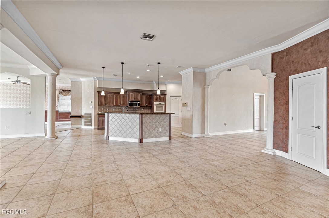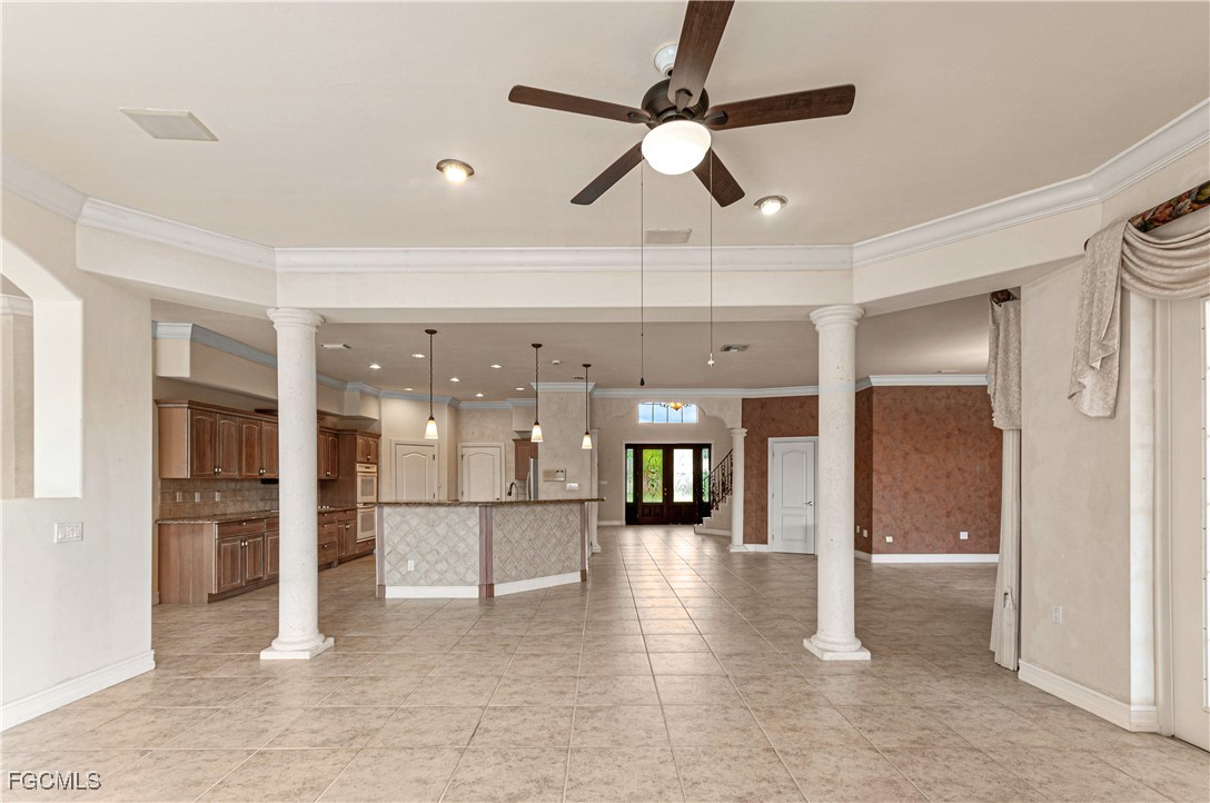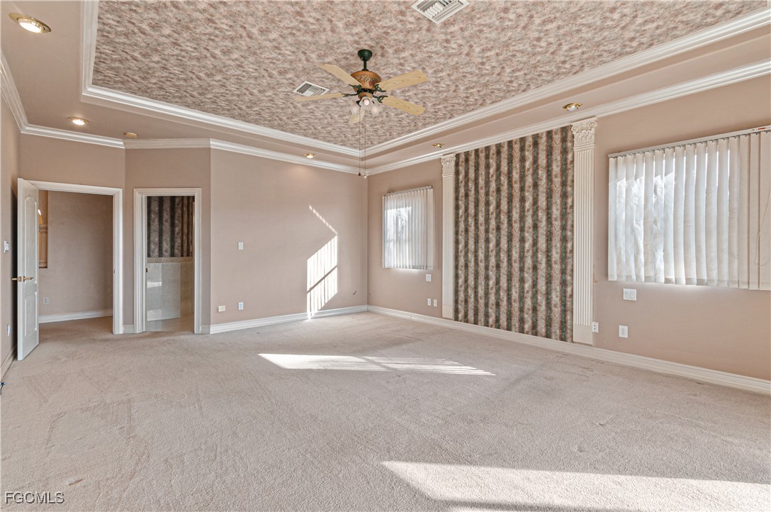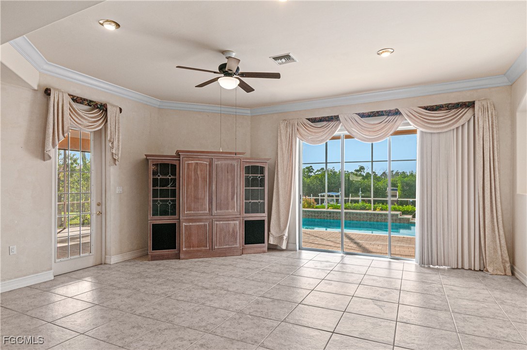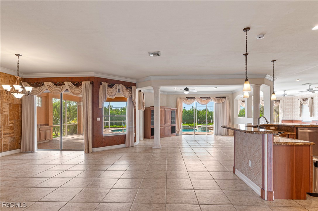 This is the home you have been waiting for in the much sought after Catalpa Cove gated boating community with beautiful Royal Palm tree lined streets. This enormous one owner custom-built home was thoughtfully designed and built by the Sellers with elegant touches throughout. Your boat slip is located behind the house on a direct access canal just minutes to open water for your SW Florida carefree boating and fishing enjoyment. The pool/lanai overlooks the canal and affords gorgeous sunset views and massive entertainment space with pool, spa and pool bath. From the oversized front porch enjoy your morning coffee and a view of the lake. The two-story entry is breathtaking with the curved staircase with wrought iron railing to the 2nd level, the entry also has a powder room and a closet craftily designed to add an elevator if needed. The 2nd level boasts 5 bedrooms, an office with access to the Primary bedroom which could be utilized as a nursery, 2 guest baths. The Primary bath has double sinks, bidet/toilet room, tile shower with multiple heads, jetted tub and 2 closets. Currently, one of the oversized bedrooms is being used as a theatre/media room. The 6th bedroom is a main floor ensuite bedroom and would be perfect for a nanny or mother-in-law suite with access to the pool/lanai. Working from home has never been more convenient with the main floor office with custom built cabinets and view of the lake. Fall in love with the kitchen layout that features self-cleaning double ovens, stainless elevated dishwasher, refrigerator, cook top and walk-in pantry. The formal dining room is spacious and overlooks the pool/lanai and is open to the great room. The game room/bar area would be perfect for family gatherings and parties, picture a pool table and game tables in the enormous room. The garage can accommodate 3 cars and has tall ceilings that would allow for a car lift or 2 for your car collection. Current configuration has the 3rd stall set up as a large shop with overhead decked storage. Also note, the community pickleball/tennis courts, playground and commercial ice machine in the Gazebo are included so you can fill your coolers for your day on the boat. TAKE ADVANTAGE OF THIS MASSIVE HOME with over 5000 SF of unparalleled living priced well below any home of its size on the water. Whether this property is designed for your full-time residence or vacation family compound, this home checks all the boxes and is waiting for your personal updates and decorative touches!