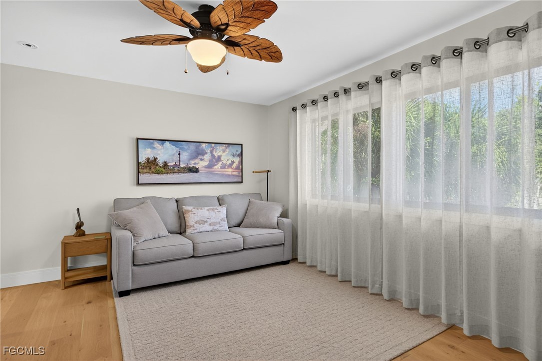 Tucked in a quaint, near-beach enclave, this serene lakefront residence, on an oversized lot with dozens of mature palms, embodies the essence of the Sanibel dream, a peaceful tropical refuge where natural beauty mingles effortlessly with refined coastal living. Elevated and gracefully updated, the home blends timeless island charm with thoughtful modern enhancements designed for comfort, style and effortless enjoyment. Go inside where beautiful wood floors lead to a breathtaking newly reimagined kitchen, where crisp lines, elegant finishes and a spacious full pantry create a chef’s haven ideal for extended island stays. The primary suite elevates everyday living with an expanded walk-in closet offering exceptional storage, an unexpected luxury in an island retreat. Throughout the home, new impact windows and doors frame shimmering lake views while providing peace of mind and a seamless connection to the outdoors. The expansive living room is a calming escape, crowned by a skylight, framed by a wine bar and lined with sliding glass doors that welcome in soft tropical light. Here, tranquil afternoons unfold against the gentle backdrop of the lake, transforming the space into your private haven. The home’s kitchen and baths strike a harmonious balance of upscale design and relaxed comfort, offering an inviting environment that feels indulgent and deeply livable. Positioned toward the quiet back of the community, where privacy is plentiful and traffic fades into silence, you are just an easy distance from the neighborhood’s beach access. Spend your days on Sanibel’s world-famous sandy shores, feel the warm Gulf waters at your feet and embrace the island lifestyle that draws dreamers from around the world. Whether you prefer shelling at sunrise, kayaking along the shore, biking beneath swaying palms or simply relaxing by the lake, the best of Sanibel awaits right outside your door. And inside? A beautifully curated, lovingly upgraded home that feels like the tropical haven you’ve been waiting for.