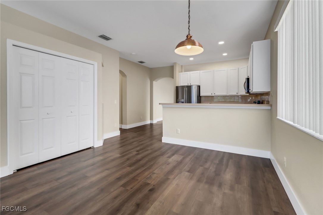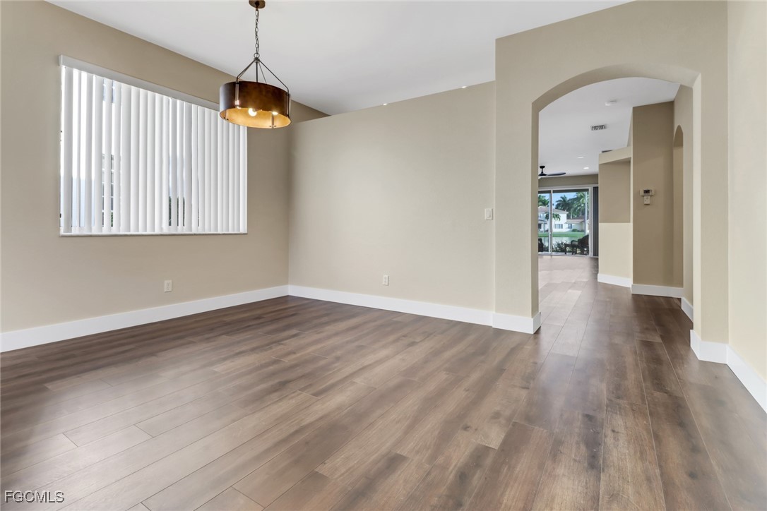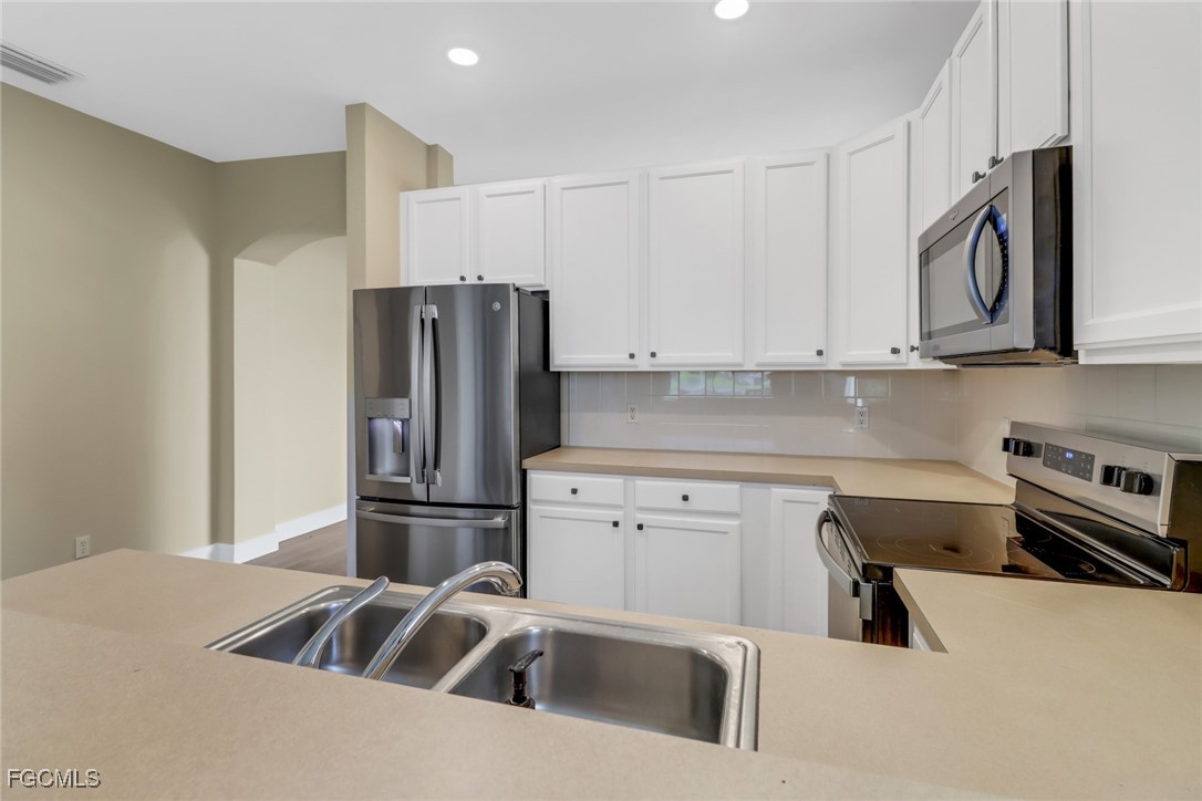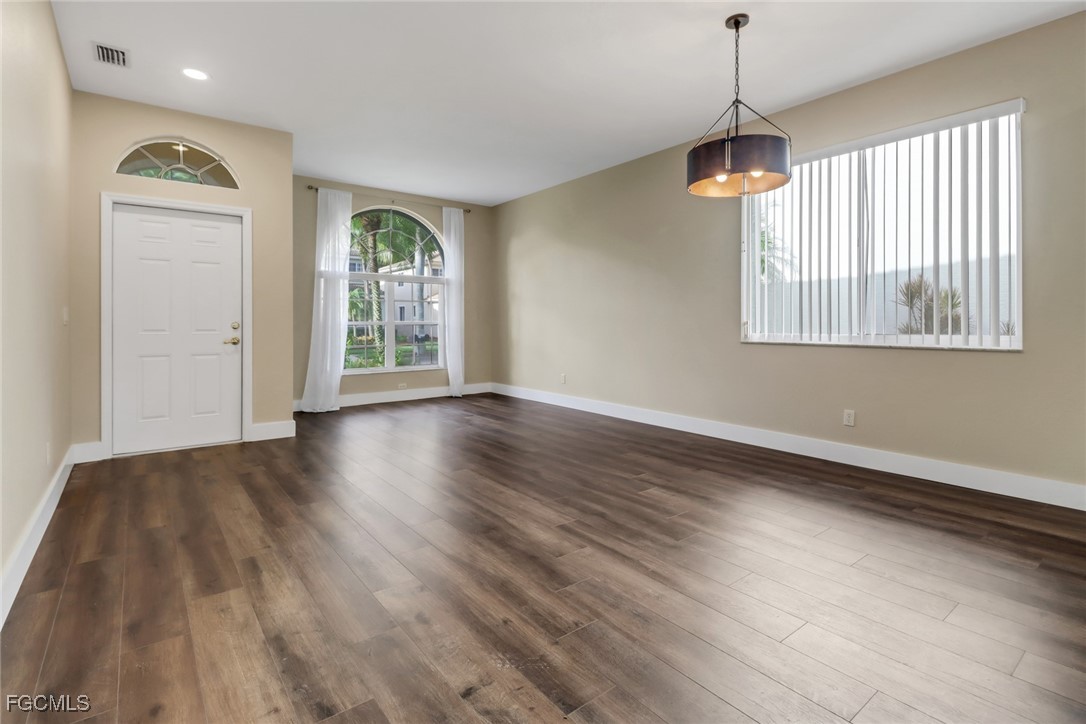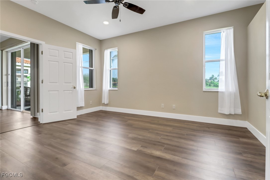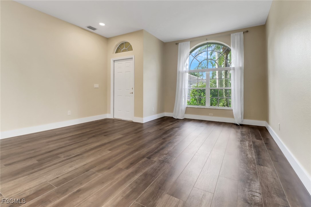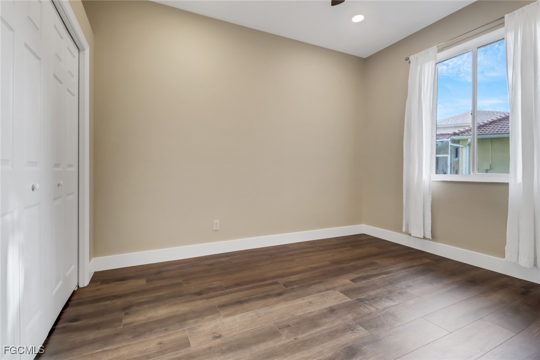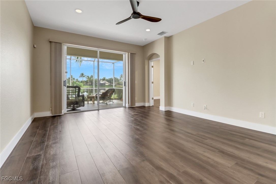 Newly renovated 3 bedroom, 2 bathroom home in beautiful Reflection Lakes, a tree-lined gated community. Situated on a beautifully landscaped lot, this home offers a spacious layout with high ceilings and a tranquil lake view from the screened in lanai. This bright and airy home has been freshly painted throughout, with new luxury vinyl flooring, custom lighting, and stainless-steel appliances that add a sleek and modern touch. Community amenities include a resort style pool, fitness center, play area for children, tennis and pickleball courts, billiards, a clubhouse, and a private path to Lakes Regional Park. Enjoy these many outdoor activities right at your doorstep. This prime location is in a peaceful neighborhood yet close to shopping, dining, entertainment, RSW, and some of Florida's best beaches. Includes landscaping, cable, wi-fi, washer, dryer and a 2-car garage. Come enjoy maintenance-free living in Southwest Florida. Pets are welcome. Smoke-free home. Don't miss your opportunity!