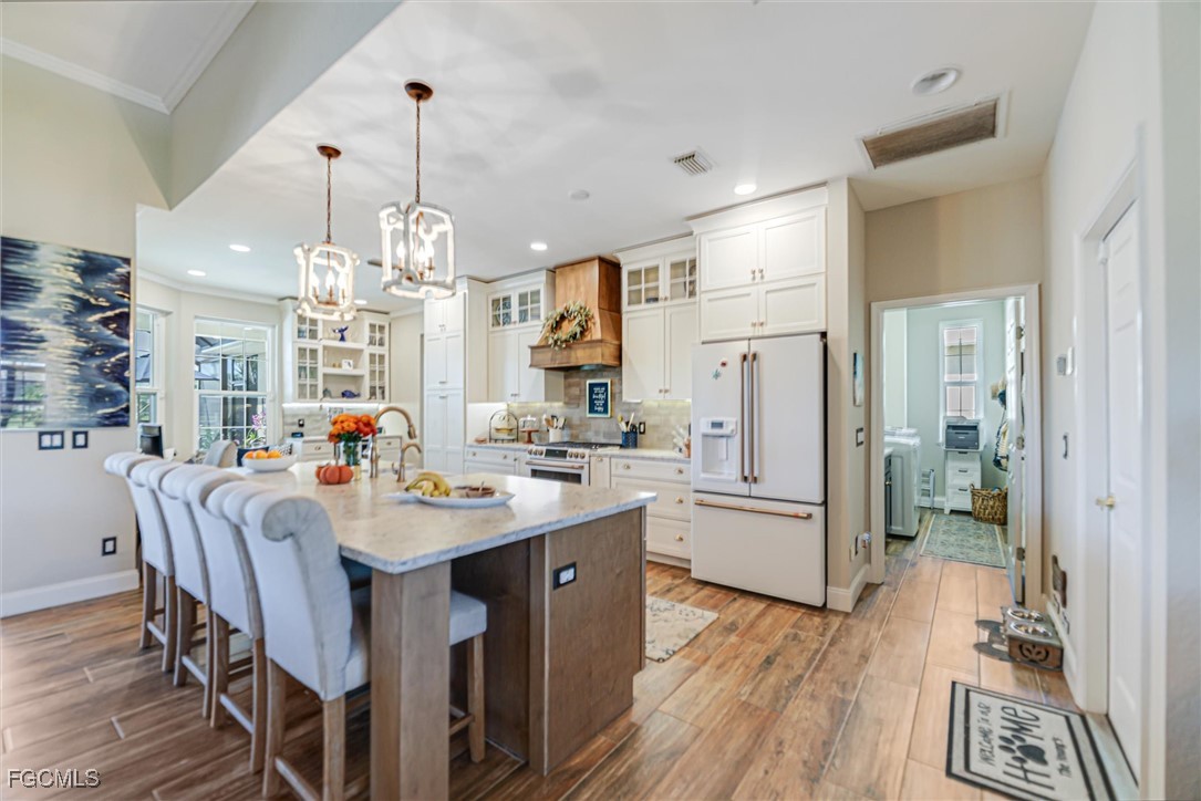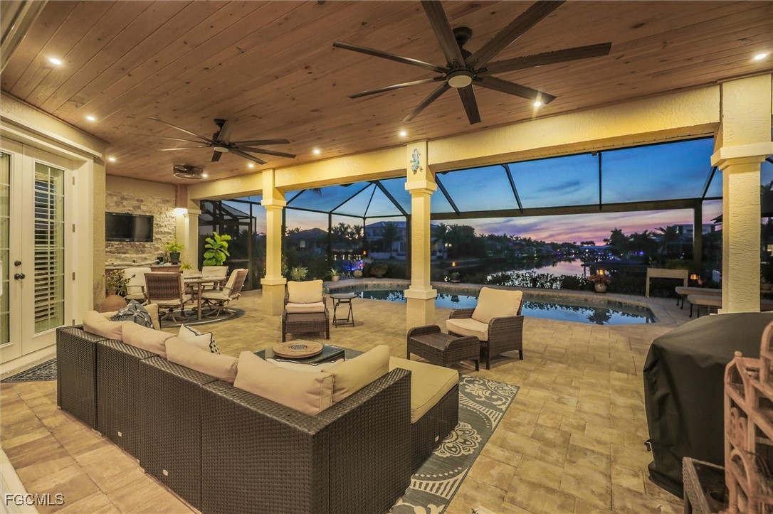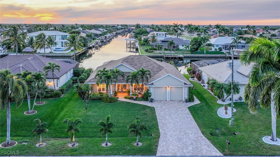 Prepare to be captivated by this stunning, fully renovated Gulf-access masterpiece tucked along a wide intersecting canal in one of SW Cape Coral’s most desirable areas. Every inch of this home has been elevated with style and substance—from wide-plank tile flooring and custom KraftMaid cabinetry to sleek GE Café appliances, quartz surfaces, and beautifully redesigned bathrooms. Shiplap accents, tray ceilings, custom lighting, crown molding, and countless designer touches infuse the home with warmth and character, while impact windows and doors (2024), a newer roof and A/C (2021), a tankless water heater, PEX plumbing, Culligan filtration with RO, propane for gas cooking, and ten generator hookups provide unmatched comfort, efficiency, and peace of mind. Step outside to your own private resort. The PebbleTec pool glistens like new (2023), framed by a picture-window lanai cage and fresh pavers surrounding the home. Enjoy an outdoor kitchen, hot/cold shower, lush landscaping, and sweeping western sunsets that pour across the water. A private dock with lift grants effortless, direct Gulf access—perfect for boating, fishing, or evening cruises. Offered partially furnished and loaded with premium upgrades, this exceptional home delivers beauty, function, and a lifestyle that truly stands apart.