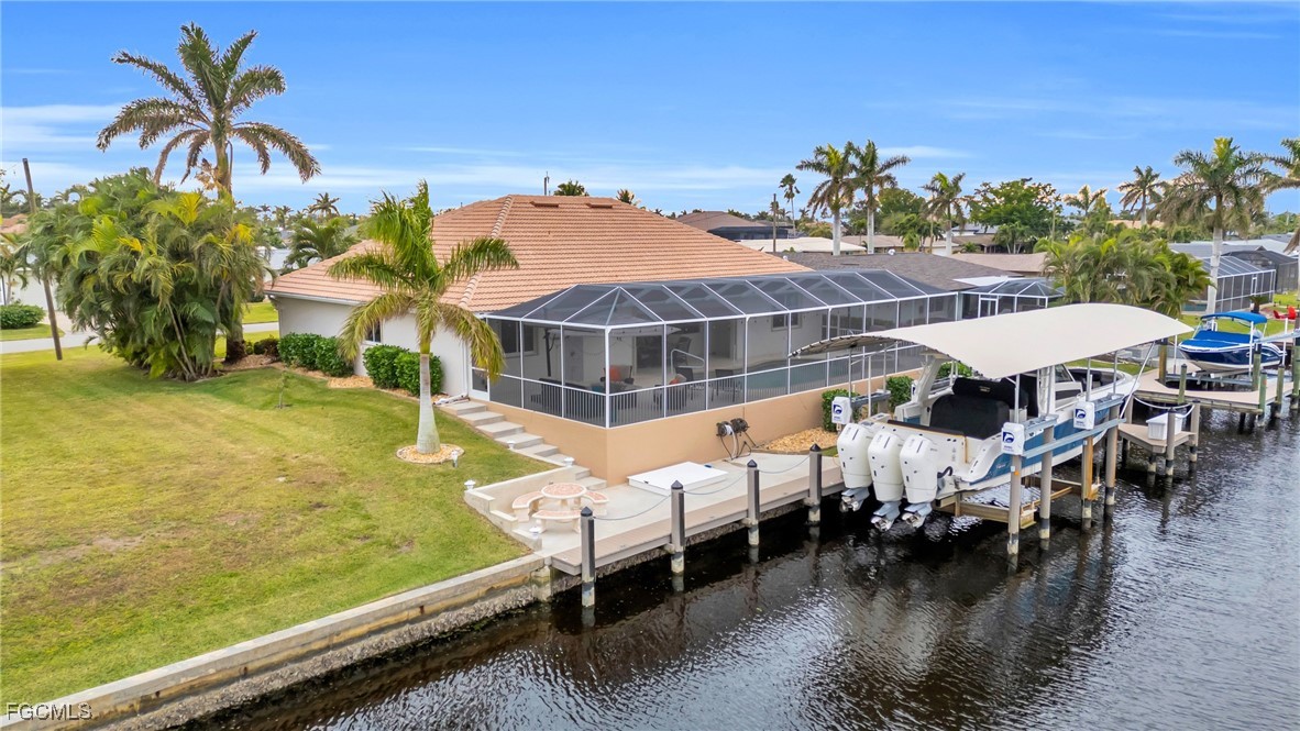 Welcome to your dream waterfront retreat! Located in one of Cape Coral’s most coveted neighborhoods near the prestigious Westin Resort, this pristine coastal home offers unparalleled access to Southwest Florida’s renowned waterways. Boaters will fall in love with the 40,000-pound boat lift, making it a breeze to be on the water in no time. Less than a five-minute boat ride to open Gulf waters, you’ll enjoy world-class fishing, island hopping, and sunset cruises right from your backyard. But the magic doesn’t stop there — dolphins and manatees are regular visitors in the canal, offering unforgettable experiences every day. This move-in ready home features 3 spacious bedrooms, including a luxurious owner’s suite with lanai access, a dedicated den/office space, and 2 beautifully updated bathrooms. The kitchen is a chef’s dream, boasting granite countertops, stainless steel appliances, and a reverse osmosis system for clean, fresh water. This property is worry free and has never sustained any water damage due to flooding or roof failure. Step outside and be greeted by a resort-style pool and spa, perfect for cooling off on warm Florida days. The outdoor kitchen and dining area make entertaining a breeze, with plenty of space to enjoy the Florida lifestyle with friends and family. Located just minutes from Cape Coral’s top dining, nightlife, and shopping, you’ll be close to Tarpon Point Marina’s upscale restaurants, local cafes, and vibrant entertainment venues. Whether you’re craving a five-star dinner on the waterfront or a lively night out, everything is within easy reach. This home comes fully furnished and ready to enjoy—just bring your boat and toothbrush! With stunning water views, wildlife sightings right from your backyard, and direct access to Gulf adventures, this home is truly one of a kind. Don’t miss your chance to own a slice of paradise in Cape Coral!