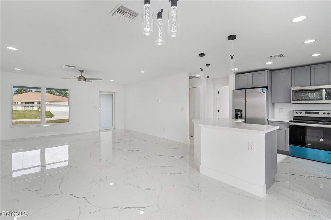 2024 New Construction Home on Big Lot for Long-Term Rent in Lehigh Acres, Florida. This thoughtfully designed and newly constructed home provides the latest in comfort and style. Modern Amenities: Enjoy contemporary living with top-of-the-line finishes and modern appliances. Spacious Interiors: 3 bedrooms, 2 bathrooms, and 1441 of living space ensure ample room for relaxation and entertaining. Laundry Room available. Quality Stainless steels appliances. Open layout with Island. LED Lighting. Bathrooms: Double floating vanity. LED Mirrors. Exterior: Hurricane proof windows and doors. Natural Light: Large windows. Natural light creating a bright and welcoming atmosphere. Outdoor Living: Covered ands screened patio and a massive backyard space for outdoor enjoyment. Parking: 2 Car Garage and more space in the driveway. Location: Family-friendly environment, close to beach, amenities, and major roadways. *WATER SOFTENER AND FILTRATION SYSTEM IN THE HOUSE!
