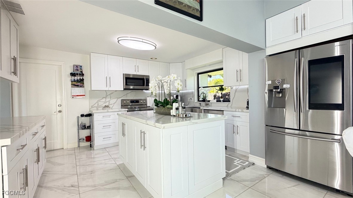 Welcome to this prime waterfront location in the highly sought after SE Cape Coral. Beautiful upgraded saltwater pool home with direct gulf access in minutes on a wide and deep canal that can even accommodate a sailboat. You will definitely love this residence with 3 bedrooms, den/office and a large gourmet kitchen. The house was recently remodeled including bathrooms, new kitchen with stainless steel appliances and new flooring. Impact resistance entrance and sliding doors. New roof was installed in 2022, CPVC repiping was sone in 2015 and new A/C unit installed in 2020. Step outside in the large, screened lanai and relax by your pool or soak in the luxurious hot tub. Enough room to entertain your friends and family for a big celebration after moving in. This is your dream home if you love boating as you will enjoy the private, covered dock with 4 motors powered lift. Extraordinary day and night views will make you fully enjoy the time spend outside. The house was not affected by any hurricane besides some roof damage, which was totally replaced. Come and see it and I am sure you will love to call it HOME.