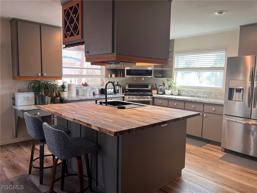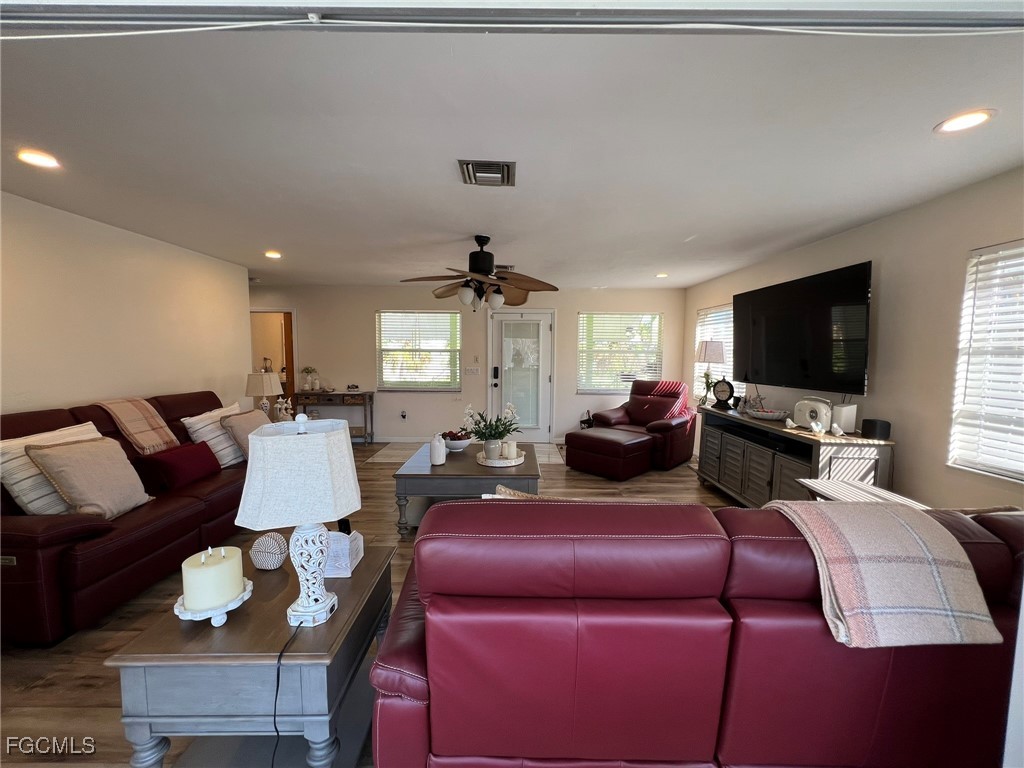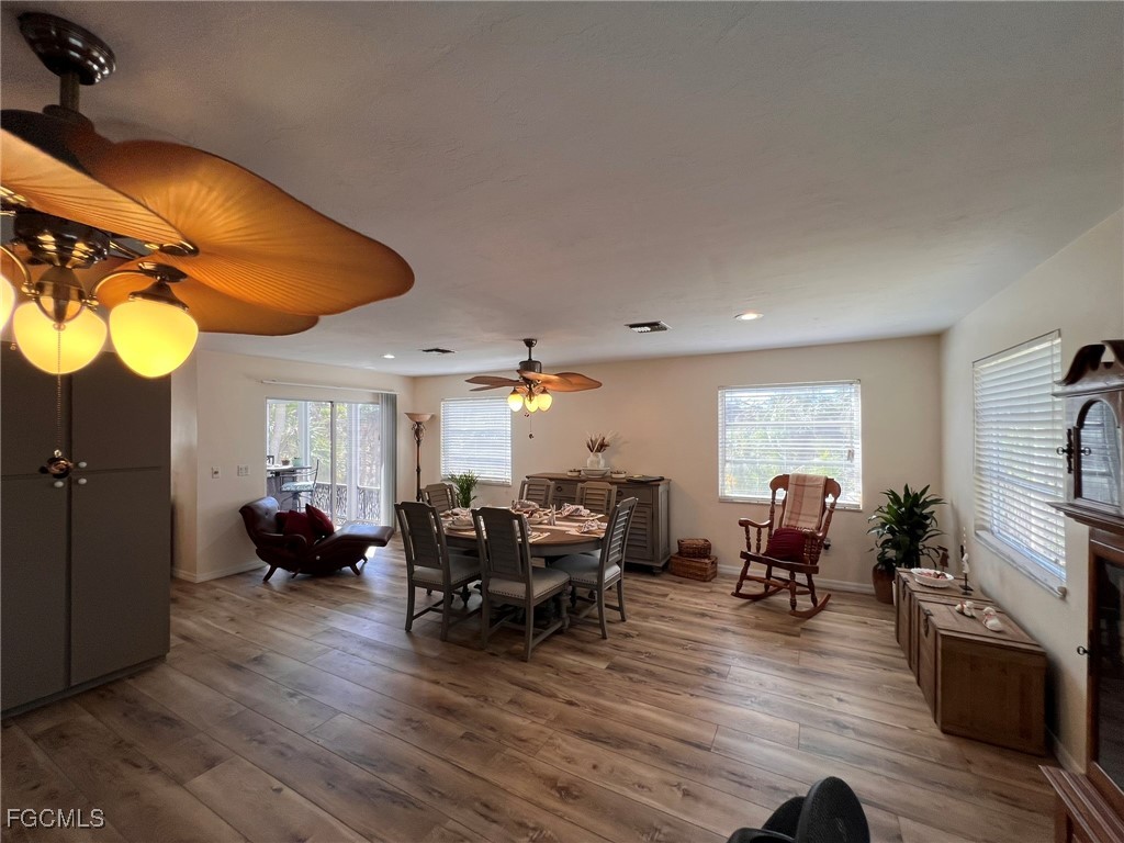Inviting Olde Florida style pool home, centrally located in the desirable Belle Meade subdivision. This 4 bedroom, 2.5 bath home offers a bright, open layout with abundant natural light, a spacious double garage, and a large open pool. Brick pavers enhance both the front entry and rear patio for timeless curb appeal. The kitchen features a butcher block island, breakfast bar, and gas range, flowing seamlessly into the dining area, living room, and additional front room. The grande primary suite with vaulted ceiling includes two walk in closets and an ensuite with a large walk in shower. Three additional guest bedrooms offer excellent flexibility, along with generous storage throughout. A powder room is conveniently located on the main level. The backyard is designed for entertaining, complete with a vinyl privacy fence, expansive patio, and a new outdoor kitchen. Major improvements completed: • Luxury plank flooring throughout • Updated bathroom vanities • Two zone HVAC • New pool equipment • Resurfaced pool • Gutters • Hurricane rated front door, sliders, and garage doors. Located near The Sanibel School, the Rec Center, and Ding Darling Wildlife Sanctuary, this home blends convenience, charm, and everyday comfort. A fantastic opportunity not to be missed. Photos do not depict most recent updates.