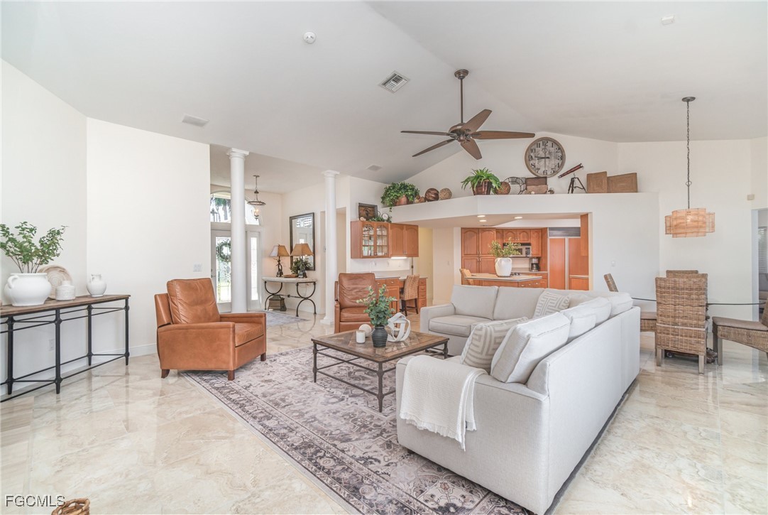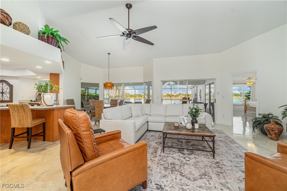 Million-dollar views await. The entire back of the property showcases panoramic vistas of the spectacular lake through oversized windows, creating a stunning backdrop from sunrise to sunset. The home offers an easy, intuitive flow: the gorgeous great room—with its beautiful focal fireplace wall—serves as a perfect spot for entertaining and seamlessly opens to the inviting pool and lanai, where the lake steals the show.