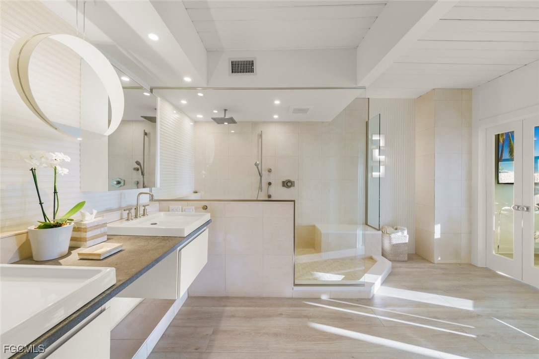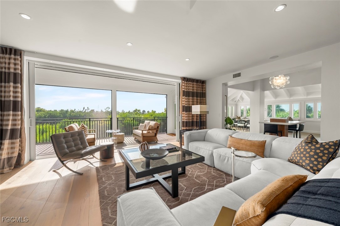 Serene Gulf-Front Vistas in Prestigious Gulf Ridge: Enjoy breathtaking Gulf-front scenery from this expertly remodeled, impeccably appointed residence set on one acre with direct western beach access in one of Sanibel’s premier communities—Gulf Ridge.This exceptional home features a Tesla roof with fully integrated solar panels and energy storage, powering the entire residence with remarkable efficiency. Owners typically enjoy average monthly electric bills of just $20–$30, a rare and valuable advantage. Upon entering, you’re welcomed by soaring volume ceilings and a spacious open floor plan ideal for modern coastal living. The great room flows seamlessly into an epicurean kitchen showcasing custom cabinetry, elegant quartz surfaces, and multiple refrigeration options suited for the discerning chef. The adjoining “Florida-style” dining room provides easy access to expansive outdoor living areas overlooking the Gulf of Mexico, the pool and spa, and preserved land beyond. Massive two-story decks extend from both the main living level and the primary suite, creating generous spaces for relaxation, dining, and entertaining. Guest suites are thoughtfully positioned on the main level, separate from the primary, each offering abundant natural light and deck access. The primary retreat is perched on the top floor, capturing panoramic views of the azure Gulf waters—a private sanctuary in every sense. A rare offering with exceptional refinement, privacy, and efficiency, 5145 is a true gem for the discerning buyer who values quality craftsmanship and timeless coastal elegance.