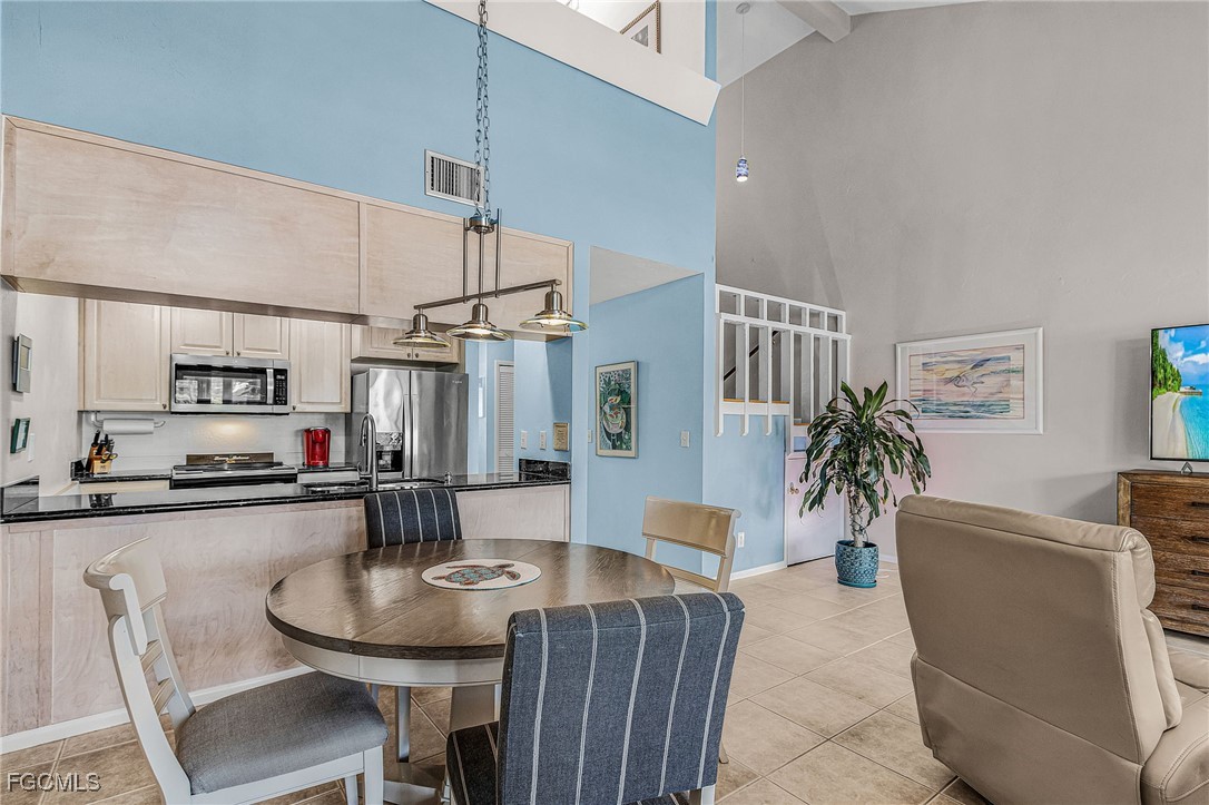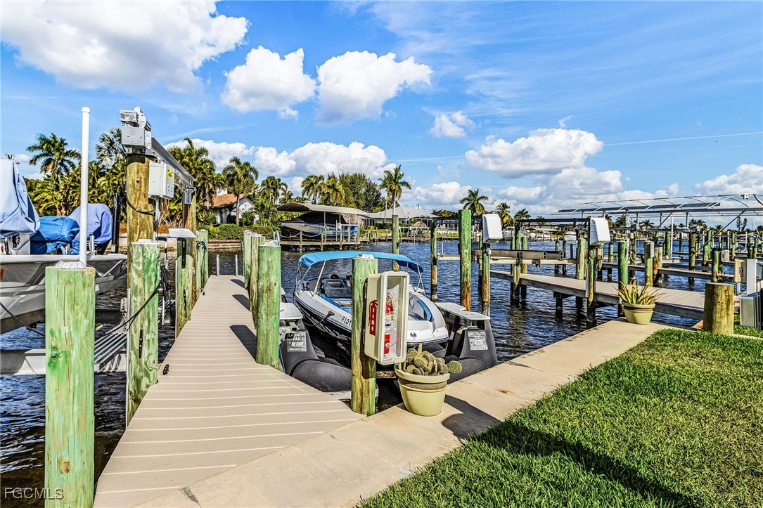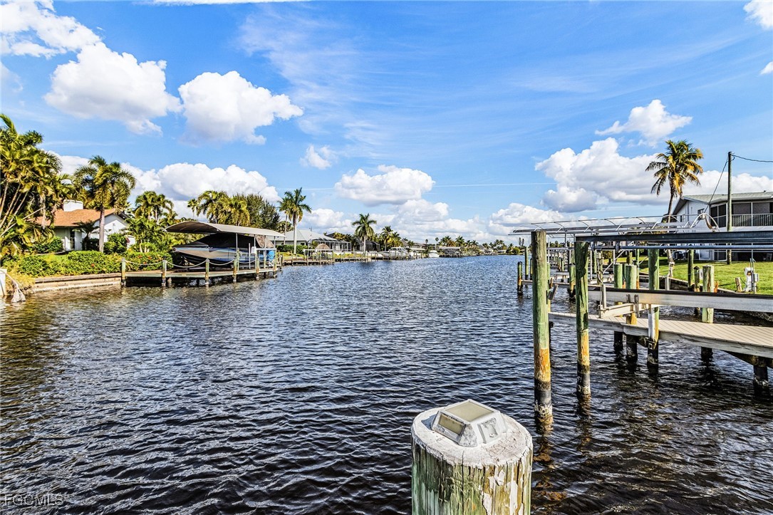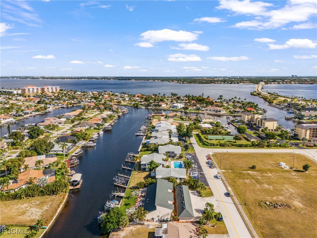 Location, location, location! Boaters will LOVE this unit. Gulf Access Direct to open water 2 bedrooms, 2 bathrooms completely furnished condo located in downtown Cape Coral. This 1251 sq ft condo offers 2 stories with unrestricted direct boat access with its own private boat slip and lift. (Scarab 17 ft boat in great shape and with only 400 hours included!!!). Other highlights are the paved back patio overlooking the canal and boat slips, a 2 car garage, new roof, electric hurricane shutters, bahama shutters and new raised seawall. Property comes with split floor plan with the master bedroom & bathroom upstairs and one bedroom and bathroom downstairs, upgraded kitchen with stainless steel appliances and granite countertops. Soaring 2-story living room with water views, tiled floors, washer & dryer off kitchen, new Trex dock with water & electric available. Plenty of restaurants, bars, grocery stores, other shopping and 2 marinas (yes 2!!!) at walking distance. Low association fees with reserves already in place. Enjoy this Florida boaters life style!