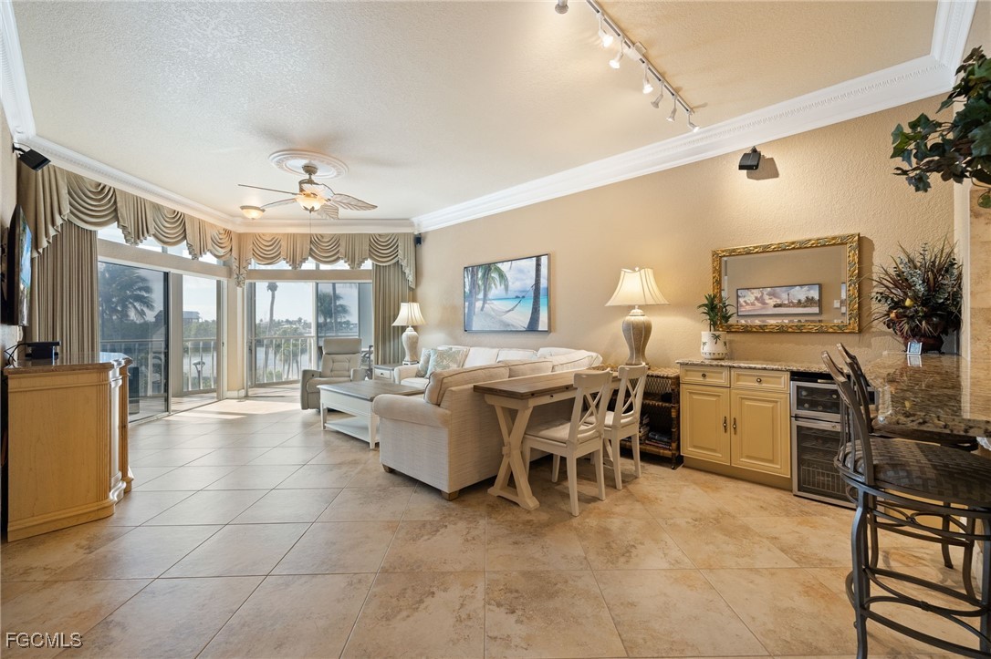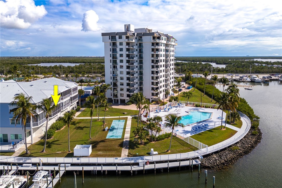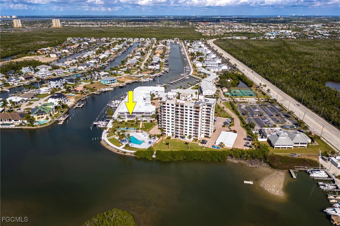This is a Rare Offering of a 3 Bedroom, 2 Bath Bay Front Luxurious Unit and Deep Water Channel, that will take You to Gulf Waters, or the White Sand Beaches of Fort Myers Beach, Sanibel or Captiva Island. Under Building Parking, Luxurious Member lounge, Workout Room, Bay Front Tropical Pool, and even Your Boat Dock are for You to use. This Unit has been designed by the previous owner to have a large formal dining room, which can be converted to the original third bedroom. High ceilings, Large Master Suite, Walk-In Closets, Spectacular Sunsets, Panoramic Views from Your enclosed lanai, are all part of living in the newest building in Boardwalk Caper called the "Fortress". Whether you enjoy fishing, boating, kayaking, paddleboarding, swimming, or just strolling along the half a mile lighted boardwalk watching for dolphins, this home provides a great place to start your next Florida memories.