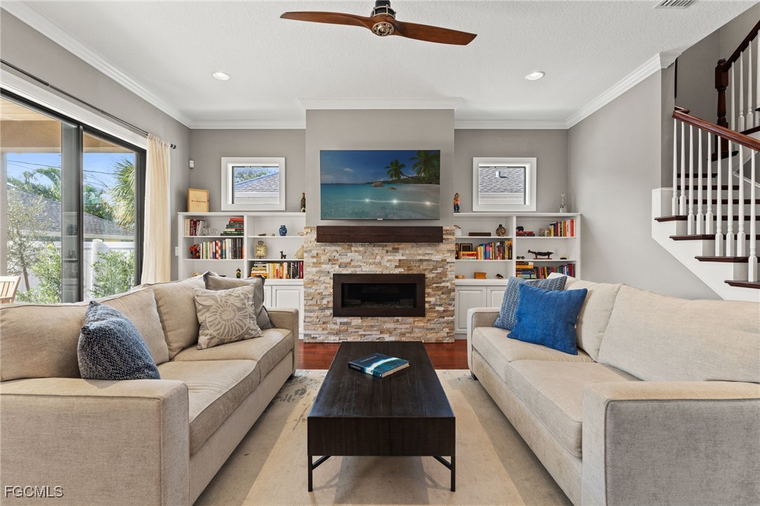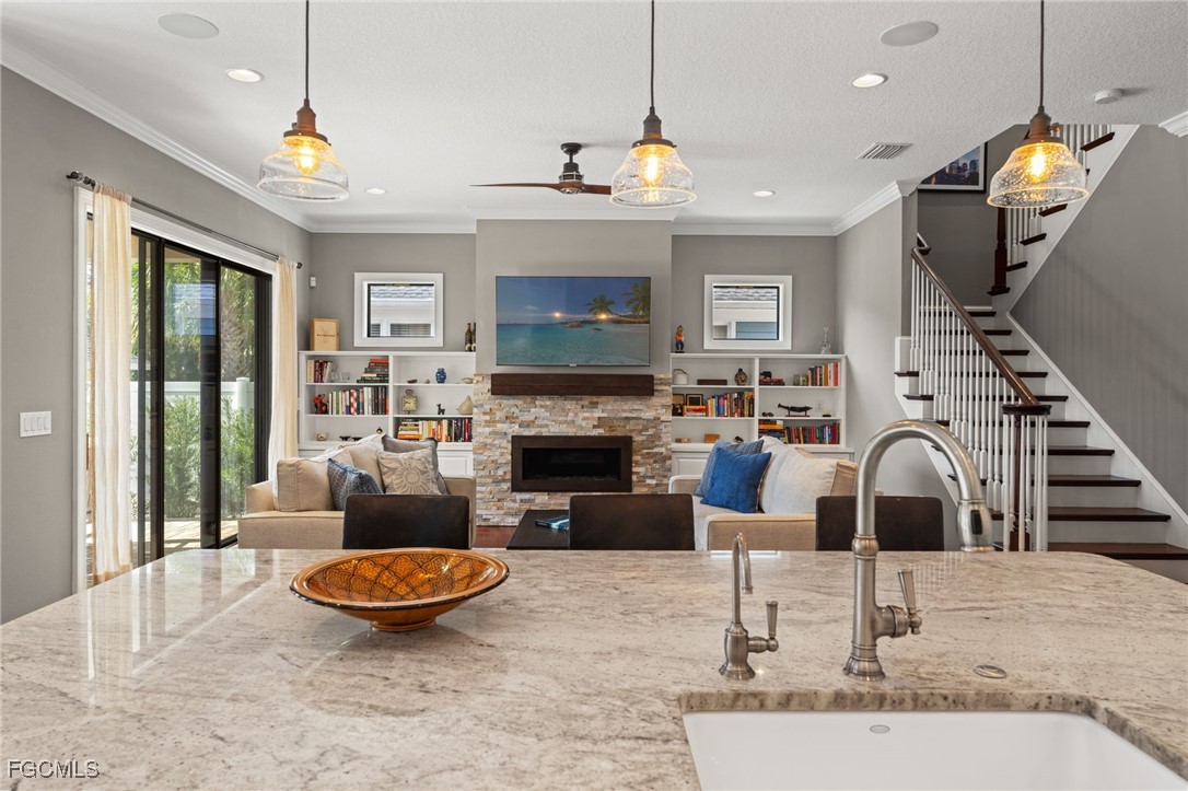 In the heart of Historic Kenwood, where brick streets and 1920s architecture define the landscape, this 2018 custom-built home offers the rarest of combinations, timeless charm and modern luxury under one roof. Thoughtfully designed to honor the character of the district while delivering modern luxury, this home offers 3 bedrooms plus a den, 3 full bathrooms, and 2,487 square feet of beautifully curated living space. Hardwood floors run throughout the home, complemented by impact-resistant windows and recent custom landscaping that enhances both curb appeal and privacy. The main level features a first-floor bedroom with en-suite bath, ideal for guests and conveniently positioned to double as a pool bath. A private den with French doors provides flexible space for a home office or potential fourth bedroom. At the heart of the home, the open-concept kitchen and living area is designed for both everyday living and entertaining. A built-in dining area overlooks the pool and lanai, while the kitchen showcases custom two-tone wood cabinetry, tile backsplash, induction cooktop, paneled Sub-Zero refrigerator, farmhouse sink, and a large island with seating. The adjoining family room is anchored by custom built-ins and a gas fireplace, creating a warm and inviting focal point. Upstairs, a versatile loft leads to the primary suite, complete with two walk-in closets and a spa-inspired bath featuring dual vanities and a walk-in tiled shower. A guest bedroom, full guest bath, and dedicated laundry room complete the second level. Outdoors, the fully pavered lanai surrounds a resort-style pool with waterfall feature, while a built-in play area and sandbox add a thoughtful, family-friendly touch. A separate two-car garage accessed via the rear alley preserves the historic streetscape while providing modern convenience. Notably, the home is not located in a flood zone. Ideally situated just minutes from Central Avenue, the Warehouse Arts District, Downtown St. Petersburg, and the area’s renowned St. Pete Beach, this home offers a rare opportunity to enjoy historic charm, modern construction, and the best of the St. Petersburg lifestyle.