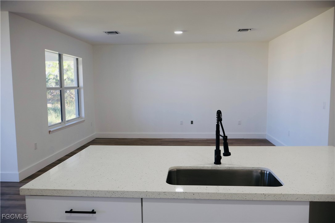 This stunning 2026 new construction 3 bedroom, 2 bathroom single-family home is located in the highly desirable Southwest Lehigh Acres area. Featuring a modern open concept layout with quality finishes throughout, this residence is built to current Florida building standards for ultimate peace of mind. Durable vinyl plank flooring flows seamlessly throughout the entire home, offering both style and easy maintenance. The gourmet kitchen showcases elegant white quartz countertops paired with crisp white cabinetry, providing ample space for cooking and entertaining. The spacious master bedroom includes an en-suite bathroom complete with dual vanities, a relaxing freestanding bathtub, a separate walk-in shower, and stylish white cabinetry. The guest bathroom offers convenient dual sinks and matching white cabinets. Equipped with impact-resistant windows and doors, this home delivers enhanced storm protection.