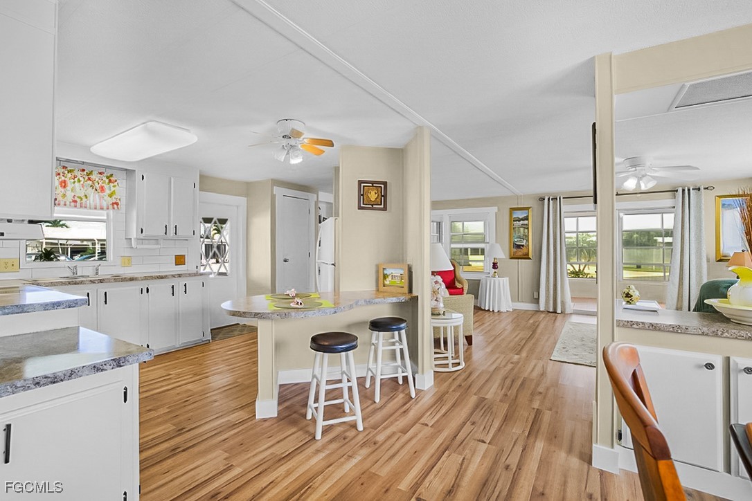 Rare large corner lot home. Gulf access community to Estero Bay and the Gulf of Mexico. Endless boating and kayaking. Own your own land. HOA Fees only $97. Cheap boat storage. Lots of amenities with Clubhouse and heated pool and jacuzzi. New large carport with storage room and 220 square foot Florida room.