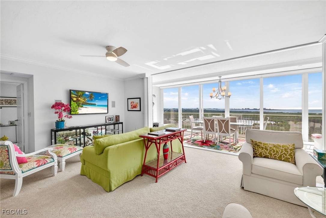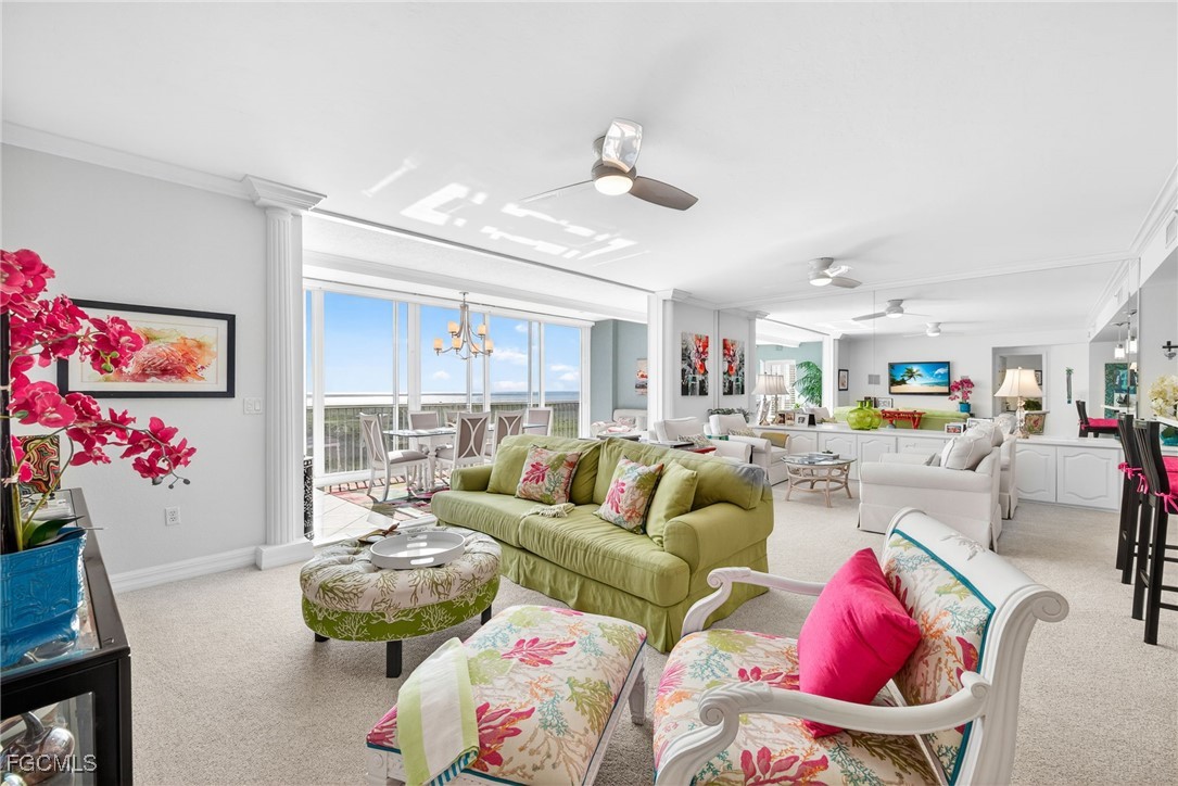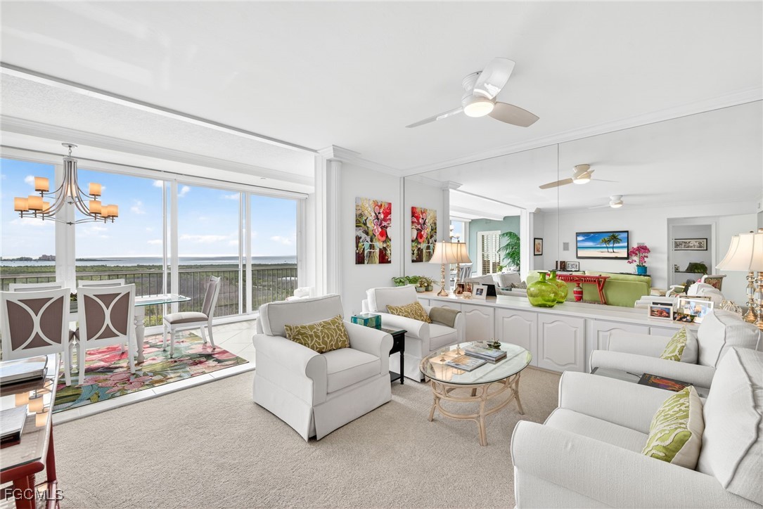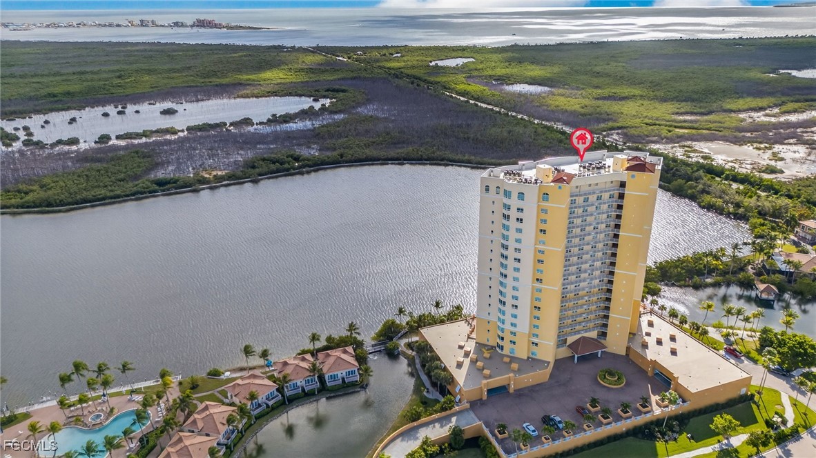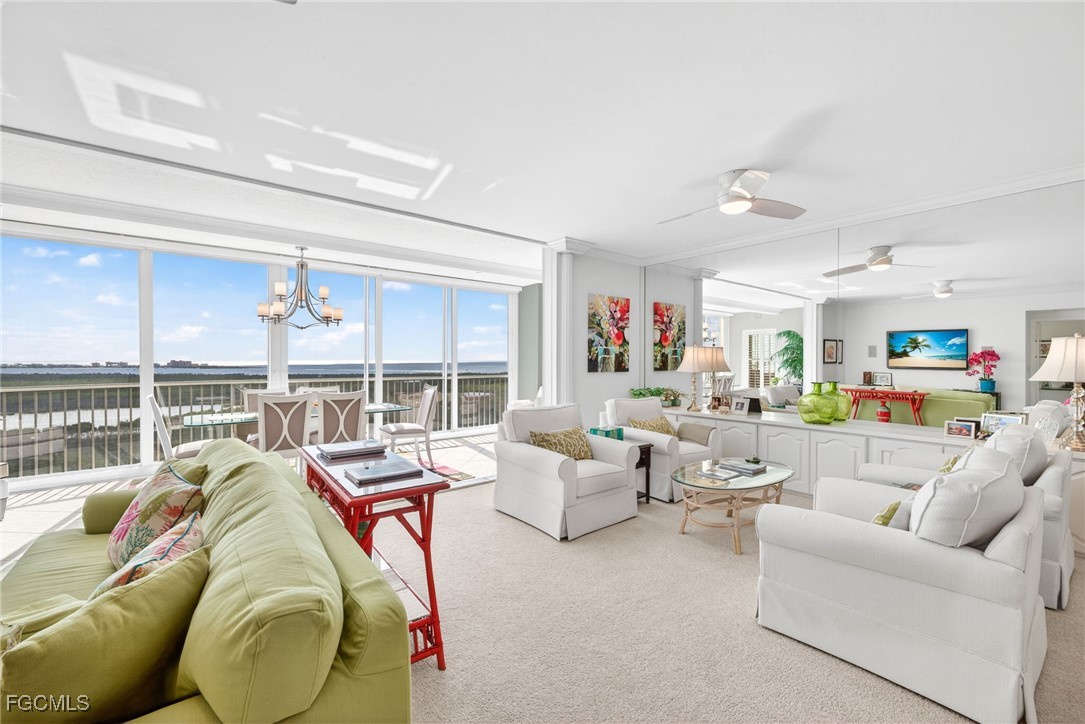 Enjoy unobstructed southwest views of the Gulf of Mexico, Fort Myers Beach, Sanibel Island, shimmering 25-acre Lake Mastique, and the Caloosahatchee River—an ever-changing coastal panorama.