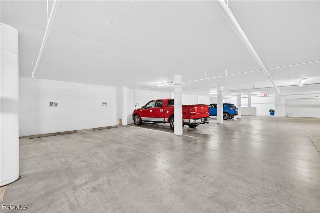 Wood-look tile enhances high-traffic areas including the elevator foyer, entry, hallway, and kitchen. Additional conveniences include two side-by-side under-building parking spaces and air-conditioned storage.