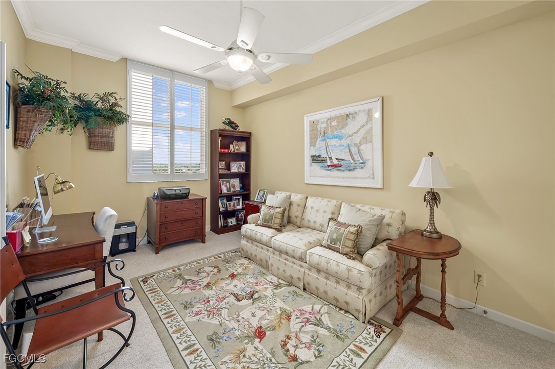 Prestigious Gulf Harbour Yacht & Country Club. 9th Floor Shores I Stonybrook Model has Panoramic West and North Views of the Intracoastal Waterway to Downtown Ft. Myers, Furniture and Country Club Golf Membership is Negotiable. 2,366 s.f. Under Air offers 3 Bedrooms 3 Baths + Large Waterfront Lanai and Balcony with Golf Course Views. Waterfront Updated Kitchen with Custom Wood Cabinetry, Marble Counters, Stainless Appliances and Large Center Island with Pull-Out Storage and Breakfast Bar + High Top Waterfront Table. Formal Dining is Adjacent to Living Room. Large Master Bedroom Suite is Waterfront with Double Closets with Built-in Storage, Upgraded Master Bath features Wood Comfort Height Cabinetry, Granite Counters, Custom Stand-Up Vanity and Frameless Shower Surround. Bedroom 2 is a Suite with Private Bath, Comfort Height Cabinets, Vanity, Walkin Closet and Balcony. Bedroom 3 could be a Den with French Doors and access to the Guest Bath. Lanai Is Tiled with Electric Storm Shutters and Electric Retractable Screens for the Ultimate View, Balcony also has Electric Storm Shutter. Flooring is 24" Diagonal Marble Tile, Carpet New (2024) in All Bedrooms, Interior Recently Painted (2024), Plantation Shutters, Crown Molding, AC 2020, Water Heater 2021, Refrigerator 2022, Oven 2023. See attchments for Country Club Renovation.