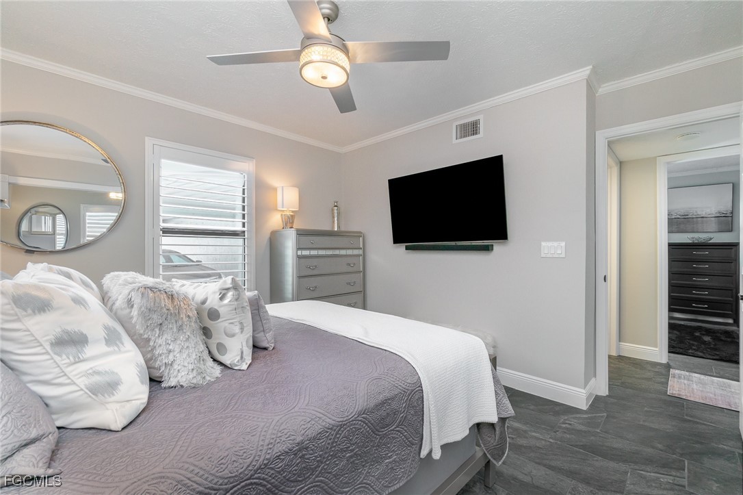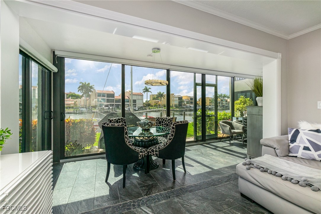 The kitchen is a showstopper with quartz countertops, sophisticated under-cabinet lighting, and stainless steel appliances. Both bathrooms have been tastefully remodeled with quartz surfaces, while the primary bathroom features a luxurious roll-in shower that transforms your daily routine into a spa-like experience.Now, let's talk about what makes this property truly special – the water. Situated on a generous 200-foot-wide canal, you're just a three-minute boat ride to the river with spectacular views along the way. As an end unit, you'll enjoy abundant natural light streaming through multiple windows and sliding doors, all hurricane-rated for your peace of mind.
