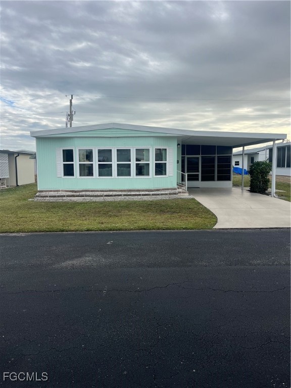 Here is your chance to own a piece of paradise in the desirable 55+ Lake Arrowhead Mobile Village! This lovingly maintained 2 bedroom, 2 bathroom lakeview manufactured home offers 1,162 sq ft of comfortable living space on owned land — no land lease — and sits safely outside the flood zone. With a low HOA of just $126/month, this home delivers exceptional value in one of North Fort Myers’ most welcoming adult communities. Cared for with pride, the home features a bright, open layout, tasteful upgrades including a new water heater, and tiedowns. There is a spacious lanai perfect for relaxing or entertaining. A rare bonus is the large workshop/laundry room with double door entry, ideal for golf cart parking, hobbies, or extra storage. The 4,573 sq ft lot provides room for outdoor enjoyment and flexibility.