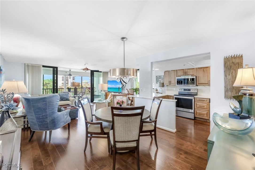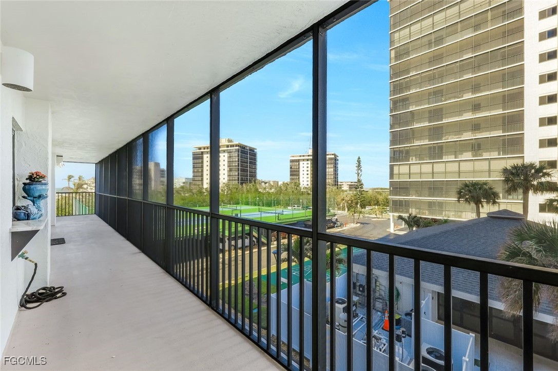 Positioned directly on Bonita Beach, this two-bedroom, two-bath residence at Bay Harbor Club captures both Gulf and bay views from a rare vantage point within the building. Expansive windows throughout the home bring water views into the primary living spaces, creating a bright, coastal atmosphere that feels connected to the shoreline from the moment you enter.