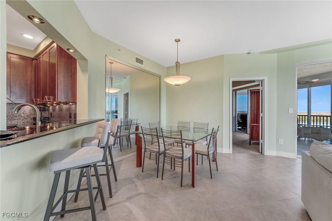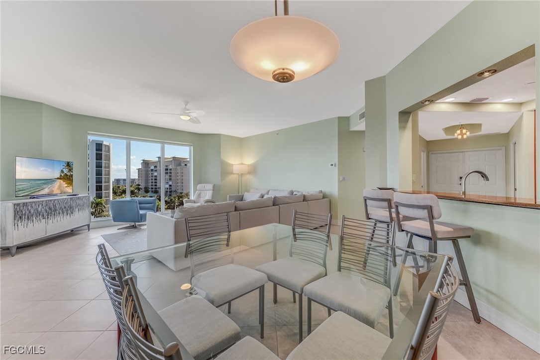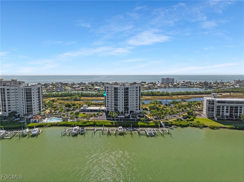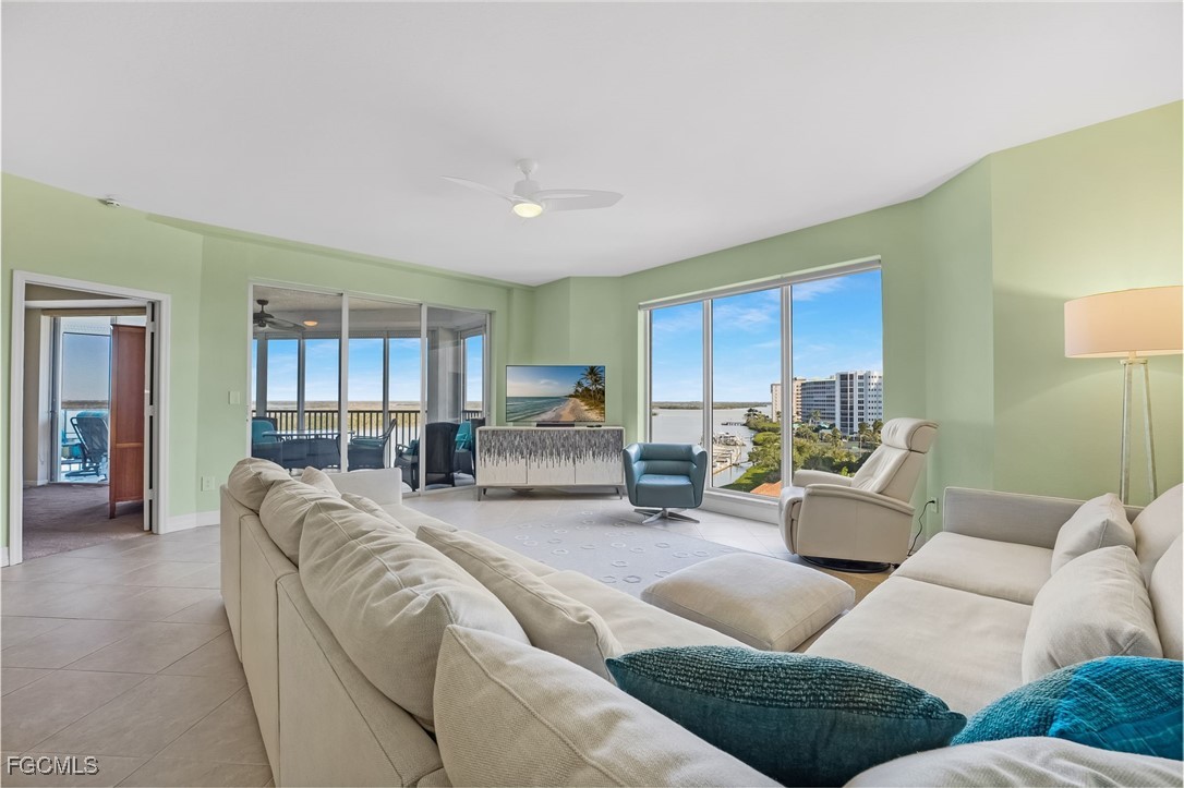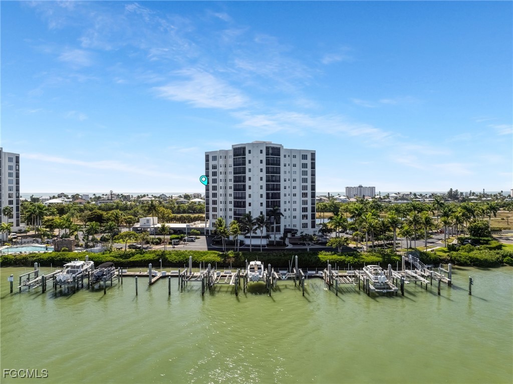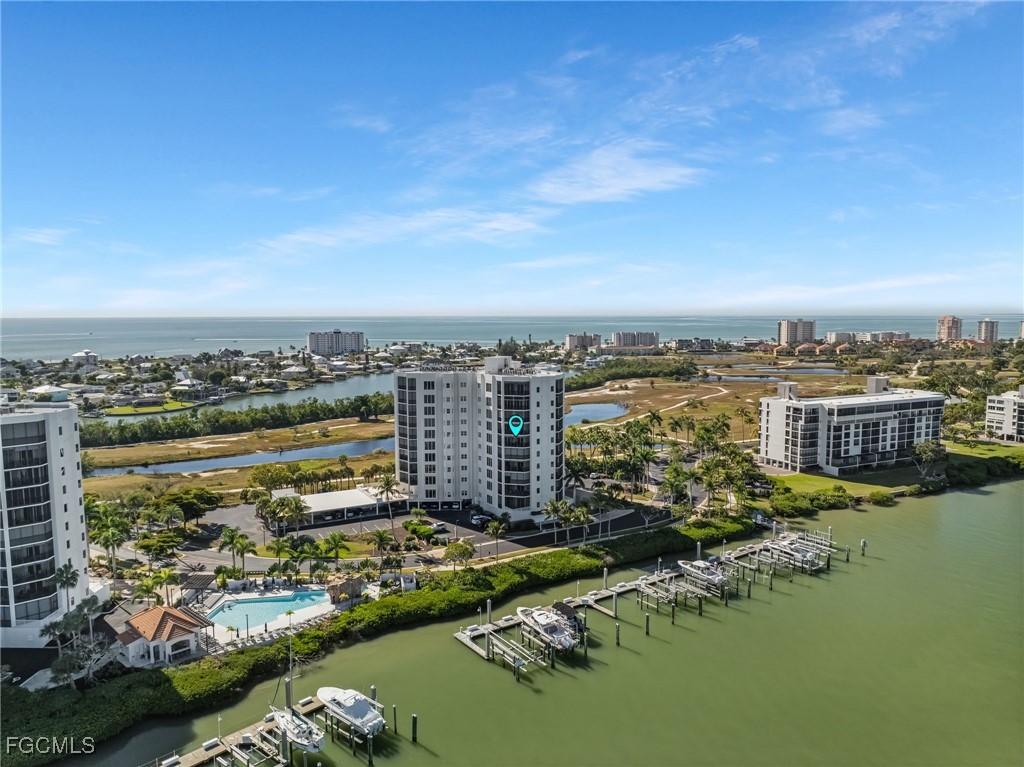 Experience spectacular direct views of Estero Bay, the gulf and the newly refurbished pool and waterfall. Enjoy the sunrise from your spacious screened in lanai while watching boats, dolphins and manatees move up and down the bay. The kitchen makes serving guests a breeze with expansive granite countertops, stainless steel appliances and spacious solid wood cabinets. The large master bedroom offers direct access to the lanai through sliding glass doors affording you sunrise water views from your bed. The master bath has his and her sinks, a separate shower, and soaking tub with an expansive window directly overlooking the bay. The guest bedroom with en suite bathroom is set back from the living area affording your visitors additional privacy while they enjoy lovely sunrise bay views. The condo has its own private laundry room and pantry along with a large storage closet just down the hall. The unit comes with one assigned covered parking space and an additional outdoor storage closet. Waterside is a luxury gated community with beach access and amenities that include a pool/spa, fitness and social rooms, saunas, guests suites for overflow guests, tennis/pickleball courts, fishing pier, walking path and putting green. Waterside building 1 is a coveted building to live in as it has had unparalleled success in its post hurricane recovery and has passed all inspections, completed all work and is fully reserved financially due to its excellent condo board and management team. With Santini Plaza a short walk away and new restaurants and shops open for business, this property is truly a slice of paradise, Easy to see, just call for appointment!