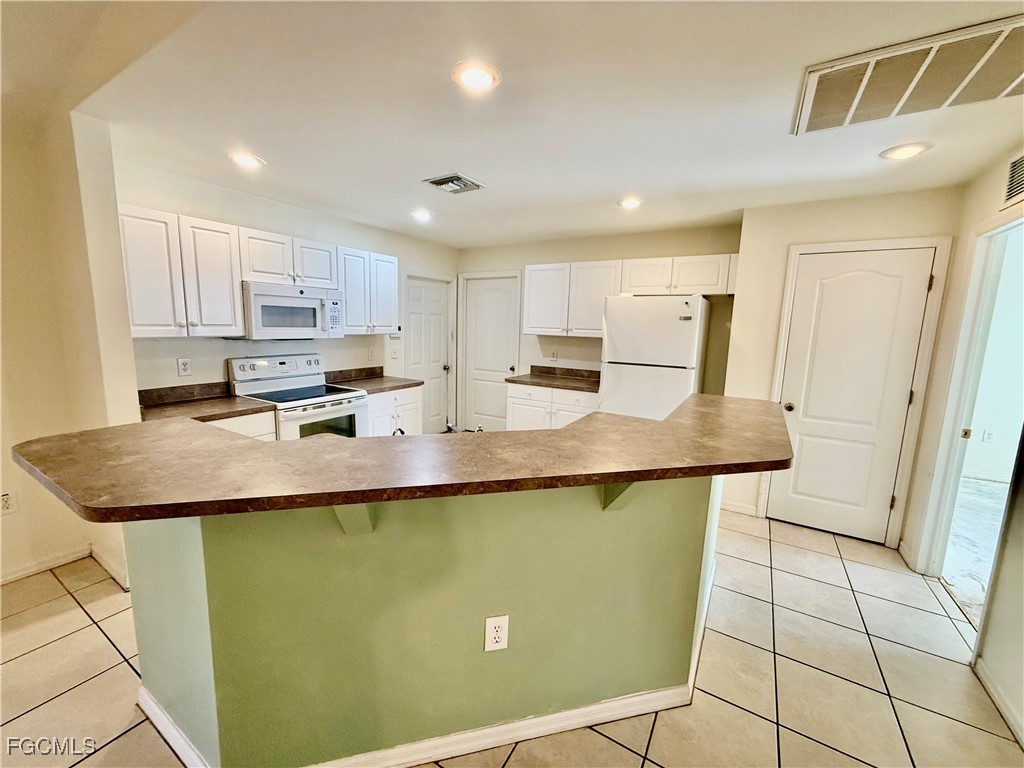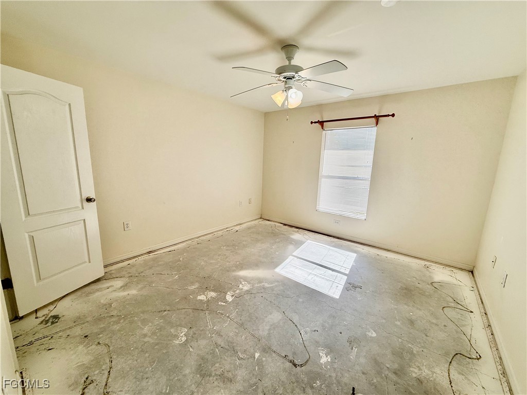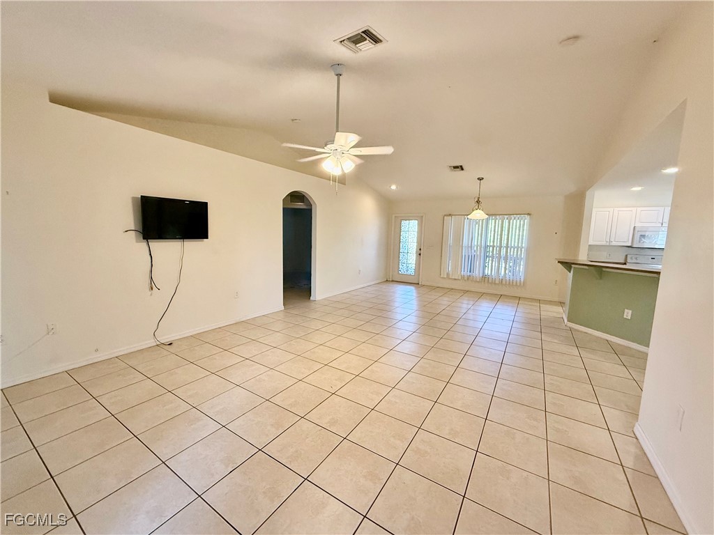 NEW DIMENSIONAL SHINGLE ROOF IN 2025, NEW CENTRAL HEAT AND AIR IN 2020, affordable 3 bedroom 2 bath home located in West Lehigh just minutes to I-75, Ft Myers and SWFL International airport, excellent neighborhood atmosphere, screened front porch and screened porch overlooking the backyard BOTH UNDER TRUSS, nice oak tree for shade, cathedral ceilings, plant shelves, ceramic tile floors in the main living area, all kitchen appliances with breakfast bar and pantry, indoor laundry room, primary bedroom with walk in closet and ensuite private bathroom, guest bedrooms on the other side of the home for privacy, sliding doors to the porch in the rear, double garage, in need of some minor cosmetics but priced accordingly. NO FLOOD INSURANCE REQUIRED. LEHIGH IS THE HIGHEST ELEVATION IN LEE COUNTY.