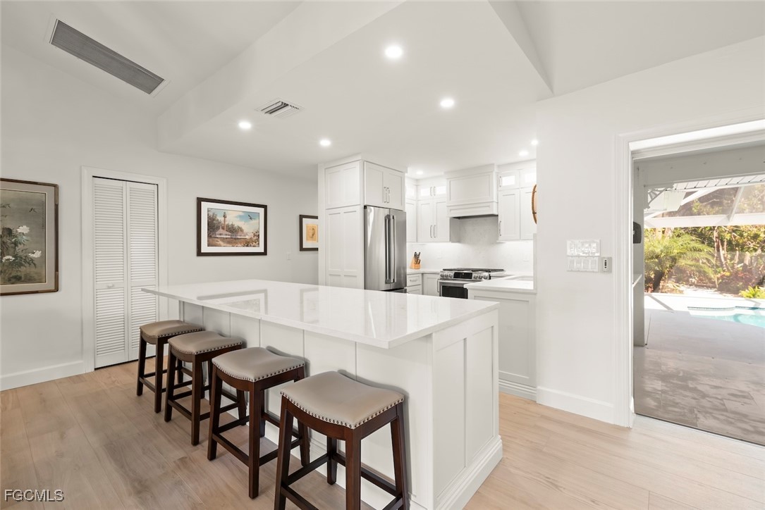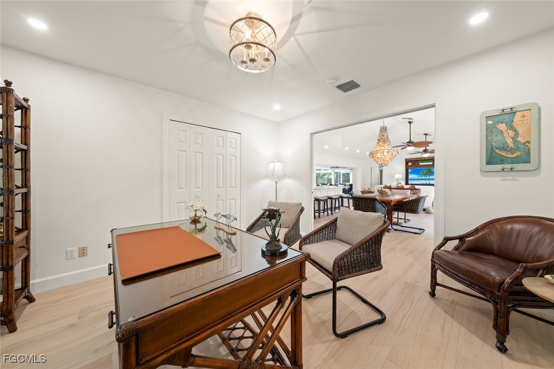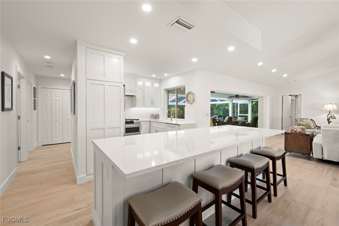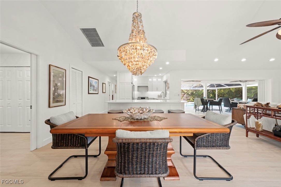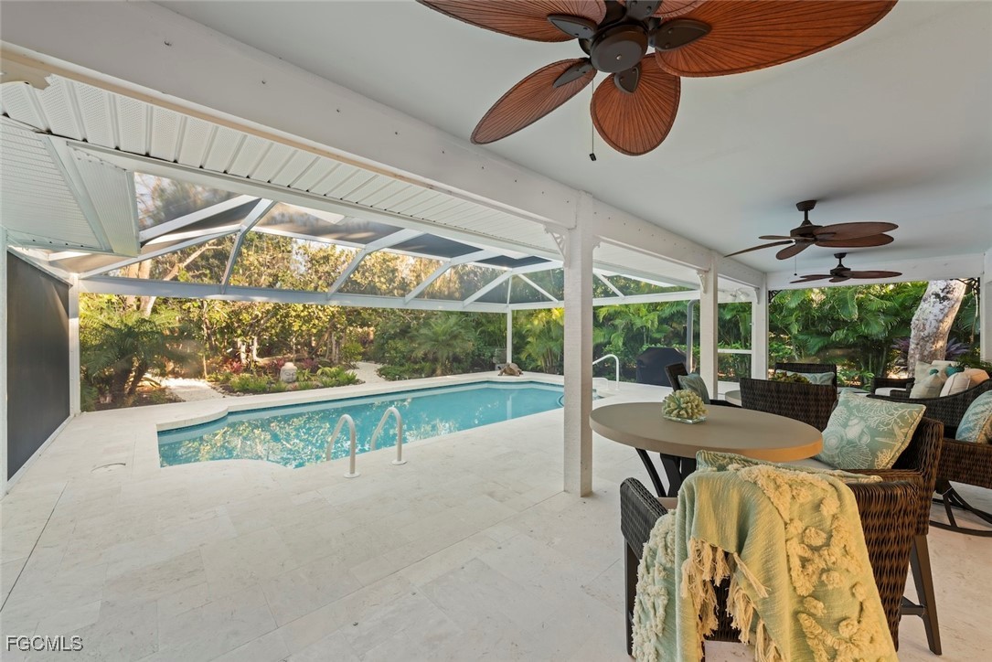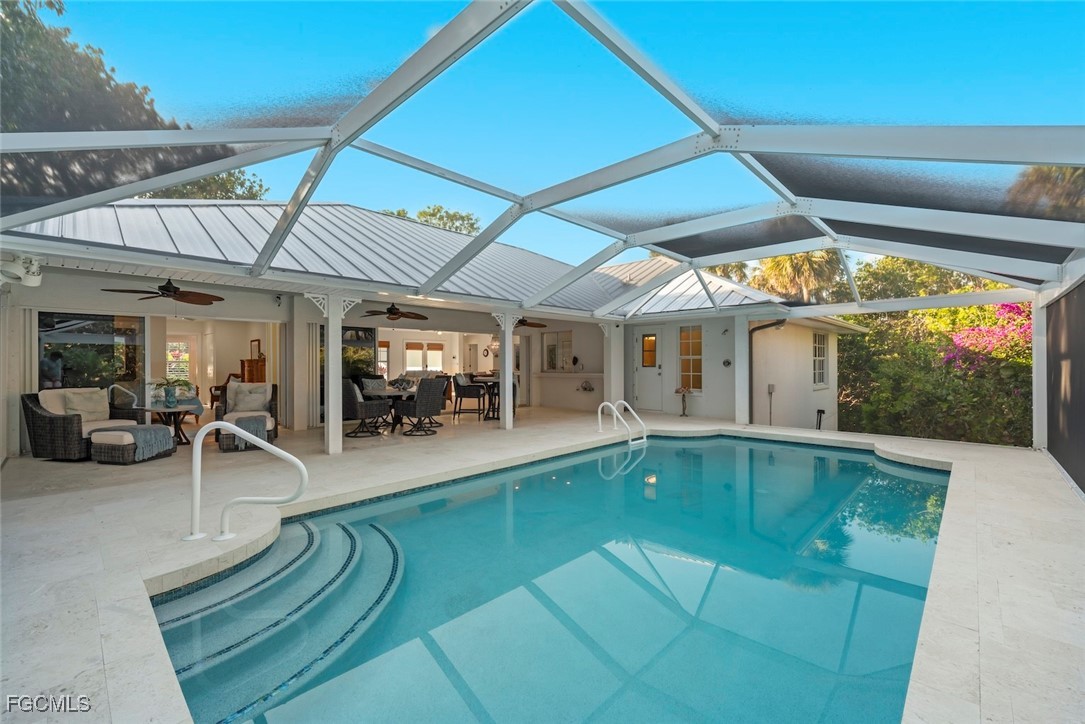 Sanibel Ridge Retreat — Elevated Luxury & Peace of Mind Situated atop the Sanibel Ridge, one of the island’s highest elevations, this 4-bedroom, 3-bath concrete block home offers exceptional natural protection from weather events. Built in 1999 and thoughtfully upgraded with nearly $1M in improvements, this front-to-back split residence blends refined island style with enduring resilience. Cathedral ceilings crown the open-concept living, dining, and kitchen areas, accented by shiplap detailing and abundant natural light. Expansive glass pocket doors open to a spacious screened lanai with saltwater pool, creating seamless indoor-outdoor living. The remodeled chef’s kitchen features Cambria quartz countertops and backsplash, custom cabinetry, Café appliances, gas range, and Bosch dishwasher. Extensive upgrades include a standing-seam metal roof, porcelain plank flooring throughout, remodeled primary suite and bath, updated lighting and fans, new HVAC with humidity control, whole-home water filtration, impact garage door, AstroGuard hurricane shutters, and new pool heater and equipment (2025). Professionally designed tropical landscaping surrounds the home with privacy, featuring mature bougainvillea, palms, orchids, and winding shell paths. Elevated above the Ding Darling Wildlife Preserve, this property offers serene views, lasting protection, and a rare combination of luxury, elevation, and island tranquility. A true Sanctuary on Sanibel Island.