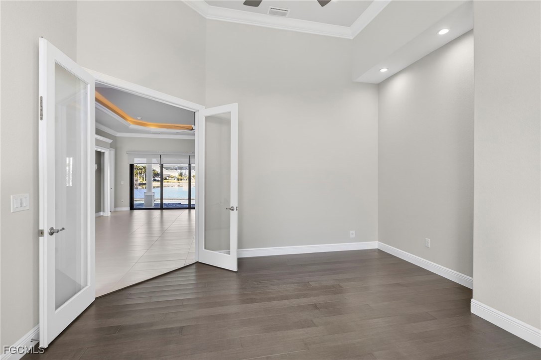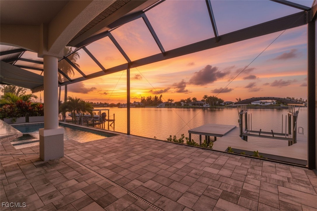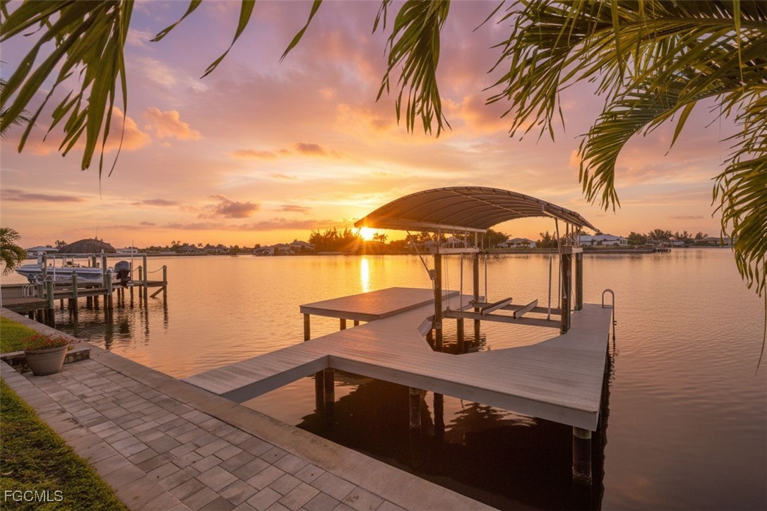 Experience the best of Florida Luxury Waterfront Living with this exceptional Cape Coral Home. This is THE home where you will experience the waterfront living you are looking for. As you enter through the front door, you will immediately be drawn to the magnificent view! The sparkling water and evening sunsets will delight you. This location offers Gulf Access, captivating straight-line water views and is only minutes to the North Spreader Canal. Enjoy the quiet neighborhood, on a peninsula, with no traffic. The home offers three bedrooms plus a den with an open concept floor plan that is ideal for entertaining. The outdoor living space will be your own private oasis, and features a heated saltwater pool, a spa and fully functional kitchen. Keep your boat ready on the covered boat lift. Bamboo flooring enhances the spacious primary bedroom which flows into the bathroom featuring a walk-through shower. A spacious, 3 car garage completes this home. Whether you’re heading out for a day on the water or enjoying sunsets from your lanai, it’s time to live the Southwest Florida Lifestyle You Deserve!