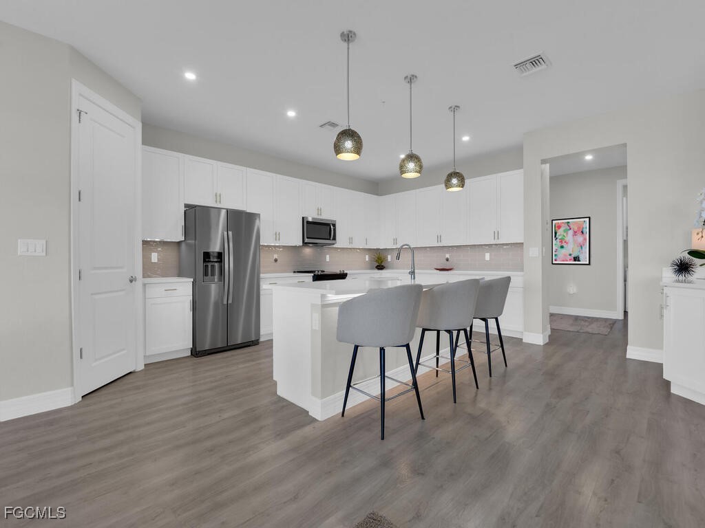 Luxury lakefront living! Enjoy the peaceful lake view while having low-maintenance giving you more time in your day to enjoy all the activities SWFL has to offer. This Monsterrat floor plan features open concept living w/ luxury features throughout- (SEE FULL FEATURE SHEET ATTACHED TO MLS) all furnishings are negotiable, volume & tray ceilings, tile flooring, high-end cabinetry, quartz countertops, Hunder Douglas window treatments, impact resistant windows/doors, frameless glass in shower, high-end Kohler plumbing fixtures, custom closet systems, GE appliances (including washer/dryer), epoxy floor in garage, & much more! The home lives like a single family w/ an almost 30 feet wide main living that offers a panoramic water view, great room layout, kitchen w/ wide island & walk-in pantry, spacious master suite w/ water view, flex area off of staircase landing that is ideal for a reading nook or casual sitting room, 10x12 guest room w/ French door entry making it ideal for a home office, 11x12 guest room, laundry room w/ sink & cabinetry, and a long screened lanai w/ tile flooring. Antilles is a small gated & deeded neighborhood that sits on 54 acres, w/ over 5 acres of wetland preserve. The community elegantly blends gorgeous West Indies style architecture with natural SWFL landscaping & beautiful Florida wildlife. Residents find Antilles perfect for seasonal or annual living, it is close to tons of shopping/dining options, 12 minutes from Marco Island, and just a short drive to the world famous Naples 5th Ave Shopping District w/ gourmet restaurants, boutiques, & a calendar full of family-friendly events.