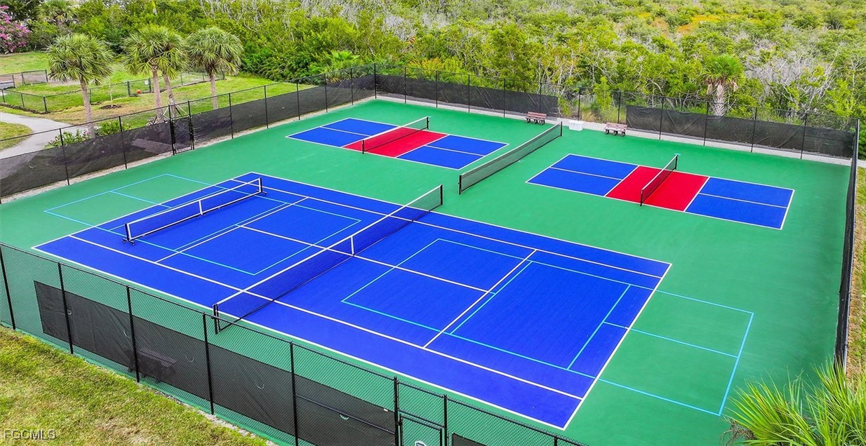 WANTED: BUYER DESIRING A RESORT LIFESTYLE – CONDO INCLUDED JUST ADD YOU! The condo is ready for you to stay in or go out. Ready for a night in? The Great RM is open, spacious w/1 wall of continuous impact glass sliders bringing the outside view in. Sit in your favorite chair & enjoy the sun dance on the 25-acre lake as well as on the Bay & Gulf beyond. Acres of preserve invite native birds to roost. At night, lights from FMB, Sanibel, including the historic lighthouse & passing boats keep you entertained. Lower the remote controlled dark-out shades to watch your favorite movie or sports team. The KIT is centralized allowing you to get meals ready while interacting w/guests. Shelf Genie pull-outs, even in the pantry, add functionality. The KIT also features newer SS Kitchen Aid appliances, white cabinets, granite counters & bar as well as backsplash. A screened & tiled 290’ lanai is protected by Storm Smart shades. This al fresco space is perfect for watching fish jump in the lake, Ospreys resting on platform nests, Ibis, Pelicans & Spoonbills flying by at your level & the Key West Express, FMB pirate ship, shrimping/fishing boats leaving for the Gulf in the am & returning in the pm. The primary suite also accesses the lanai & has a large window allowing you to lay in bed, enjoy the views & colorful sunsets at night. Two WICs are outfitted by Shelf Genie to keep your clothes & personal items organized. The BR has engineered wood floors & plantation shutters. The en suite BA features a WIS, separate soaking tub, 2 sinks, white cabinets, granite tops & private WC w/additional storage. The split floorplan gives everyone privacy by placing guest BRs & BA away from the primary BR. One BR, used as an office, has engineered wood floors & plantation shutters. The other guest rm has plantation shutters & is adjacent to the guest BA perfect for overnighters. An oversized laundry rm has cabinets above & below the counter & a deep soaking sink. A tankless water heater provides even more storage in the closet. Even your car/s will want to stay in-housed in a private 2-car garage w/freshly painted walls & epoxy floor. Close by is a coveted a/c storage area for keeping items that need climate control. A de-humidified storage space also conveys. Tired of staying in? You don’t have to go far. Mastique is located on 50-low density acres w/lush tropical trees & flowers, a 25-acre crystal clear lake surrounded by a 1-mile long shell path. The 6000+’ clubhouse contains fitness center, yoga studio, billiard/poker rm, seating area, dining rm, kitchen, media/meeting rm all extending the living space of your condo. Tennis & Pickleball courts are newly resurfaced & have new fencing & wind netting. There is even space set aside for your canine kids. If you want to venture out, walk to a beach, shopping, restaurants, grocery, bike to Sanibel & FMB. Tired? Go home, enjoy being a home body until you feel like venturing out…& the resort lifestyle repeats! Furniture negotiable.