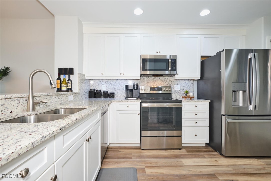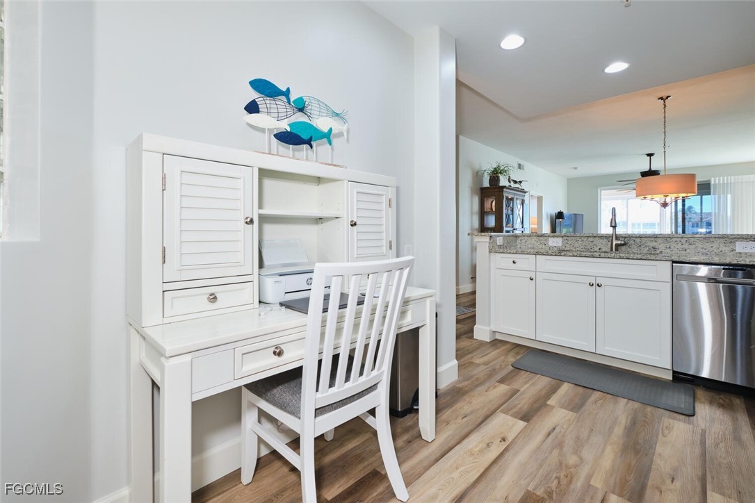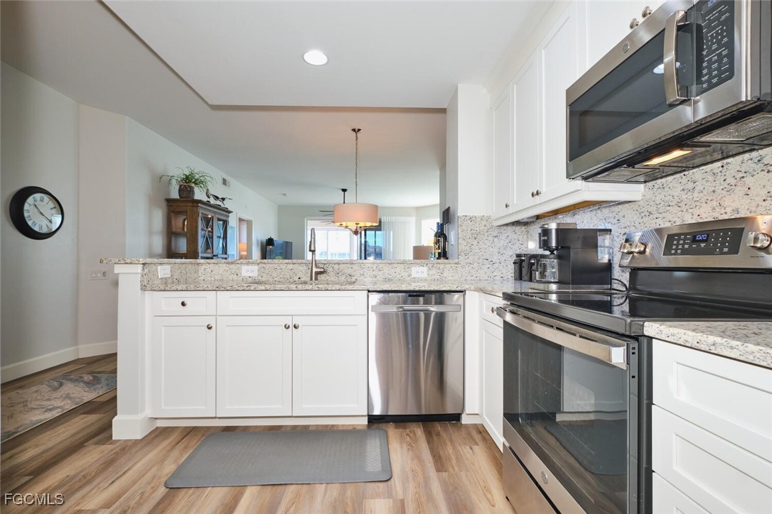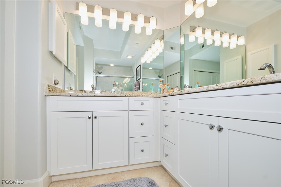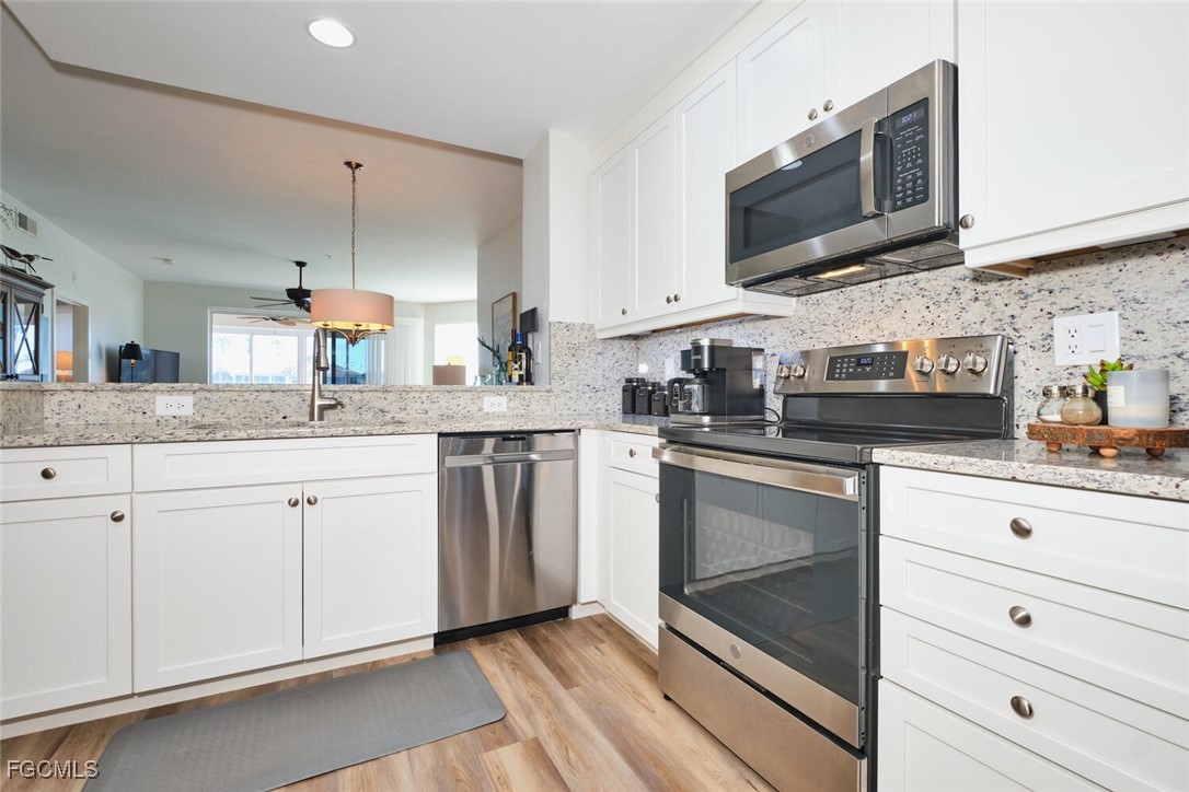 Breathtaking lake and golf course views from this 2 bedroom Golf Village condo. Eastern exposure from the lanai. The lake separates the unit from the golfers for more privacy! Directly across the street from the Waterford pool. Selling fully furnished "turnkey". Just bring your toothbrush. This unit has been totally remodeled in the last 3 years. Stainless Steel Appliances. Luxury Vinyl Flooring. Acrylic sliders on the lanai. Granite counters in the kitchen & baths. Tiled lanai. Newer Washer & Dryer. All updated lighting throughout and so much more!