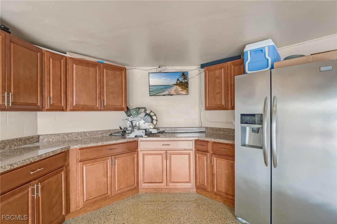Step onto the open-air lanai and enjoy tranquil marina views, while the oversized private lanai provides the perfect vantage point for watching golfers and native wildlife. The primary suite is a serene retreat with a cozy seating area and stunning golf course and lake views. The remodeled primary bath showcases a seamless glass walk-in shower, freestanding soaking tub, dual granite vanities, and custom walk-in closet.