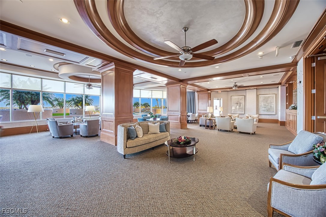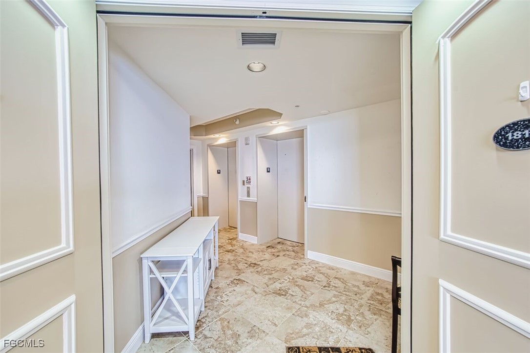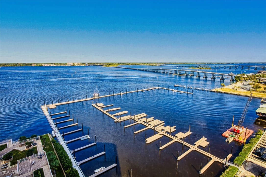 River View Urban Perfection on the 18th floor. Move-in ready, with 2135 sq ft indoor/outdoor living space. From the moment the secured elevators open into your private foyer, the double entry doors take you to a split open plan, 2 BR + Den and 2 BA condo with 2 balconies: one overlooking the river and one the city. Features that stand out: corner unit with windows galore, hurricane shutters, Hunter Douglas electric window treatments, new a/c 2026, new water heater 2025, 2 guest suites for overflow family and guests, furniture for sale. Primary Suite opens up to the screened riverfront balcony & bath has his and hers vanities, huge shower, separate tub and 2 closets. Additional bedroom & den open up to a sunny city view balcony. Nothing is left to do here but LIVE in a Premier Luxury High Rise with a social & fitness calendar as busy as you want, heated pool, hot tub, his/her saunas, BBQ grills, fitness center and gathering rooms, 2 garage parking spaces one assigned and one visitor. ENJOY the conveniences of downtown Fort Myers walking distance to dining & entertainment. Furniture Neg. WELCOME HOME!