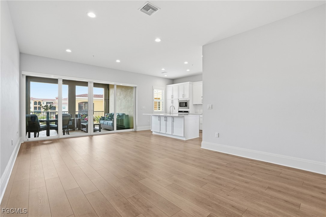 Located in the Tuscan-inspired Genova, this 2-bedroom + den, 2-bathroom condo offers refined finishes, a smart layout, and a lock-and-leave lifestyle in one of Estero’s most beautifully designed gated communities. This third-floor unit is in excellent condition with notable upgrades including 8" baseboards, custom mirrors, and upgraded trim. The kitchen offers ample cabinetry, a generous island with bar seating, and a layout that flows naturally into the open dining and living spaces. Step out to the covered patio for added privacy and outdoor enjoyment. The primary suite includes an oversized walk-in closet, private balcony, and ensuite bath with double sinks and a walk-in shower. A separate den with French doors provides a flexible space for a home office or guest room. This unit features impact glass on all windows and sliders as well as a hurricane lanai screen and also includes a private 2-car garage and two storage lockers, providing ample space for bikes, seasonal items, or beach gear. Residents enjoy access to resort-style amenities including a pool and spa, indoor lap pool, clubhouse, fitness center, and bocce courts, all located minutes from Coconut Point, Gulf Coast Town Center, and area beaches with just a 15 minute drive to RSW.