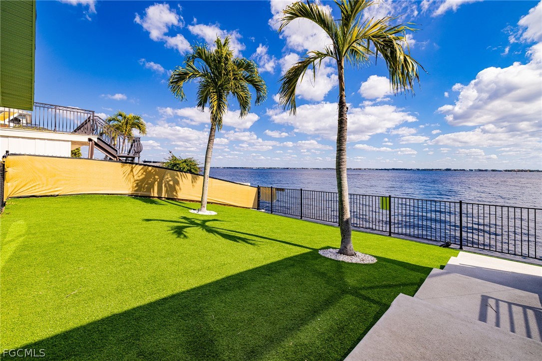 Additional features include impact glass throughout, freshly painted exterior, paved roundabout driveway, newly added fencing with pet-friendly turf, outdoor shower hookup, and impeccable turnkey furnishings that make this home move-in ready.
