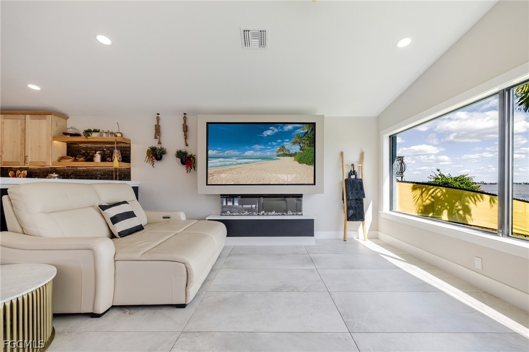 The moment you open the front doors, your eyes are drawn straight through the home to a wall of expansive windows framing a panoramic river view. It feels like living inside a moving masterpiece - boats gliding by, shimmering water reflections, and sunrise and sunset skies that change by the minute.