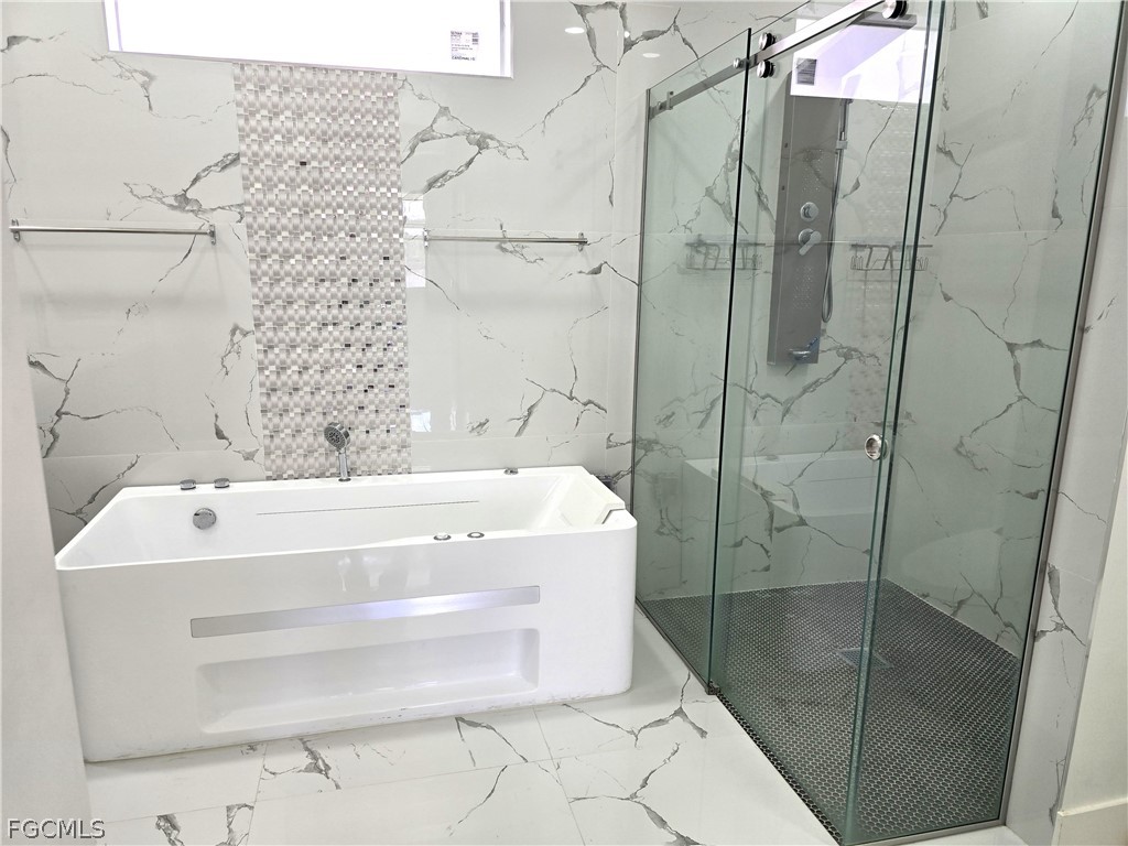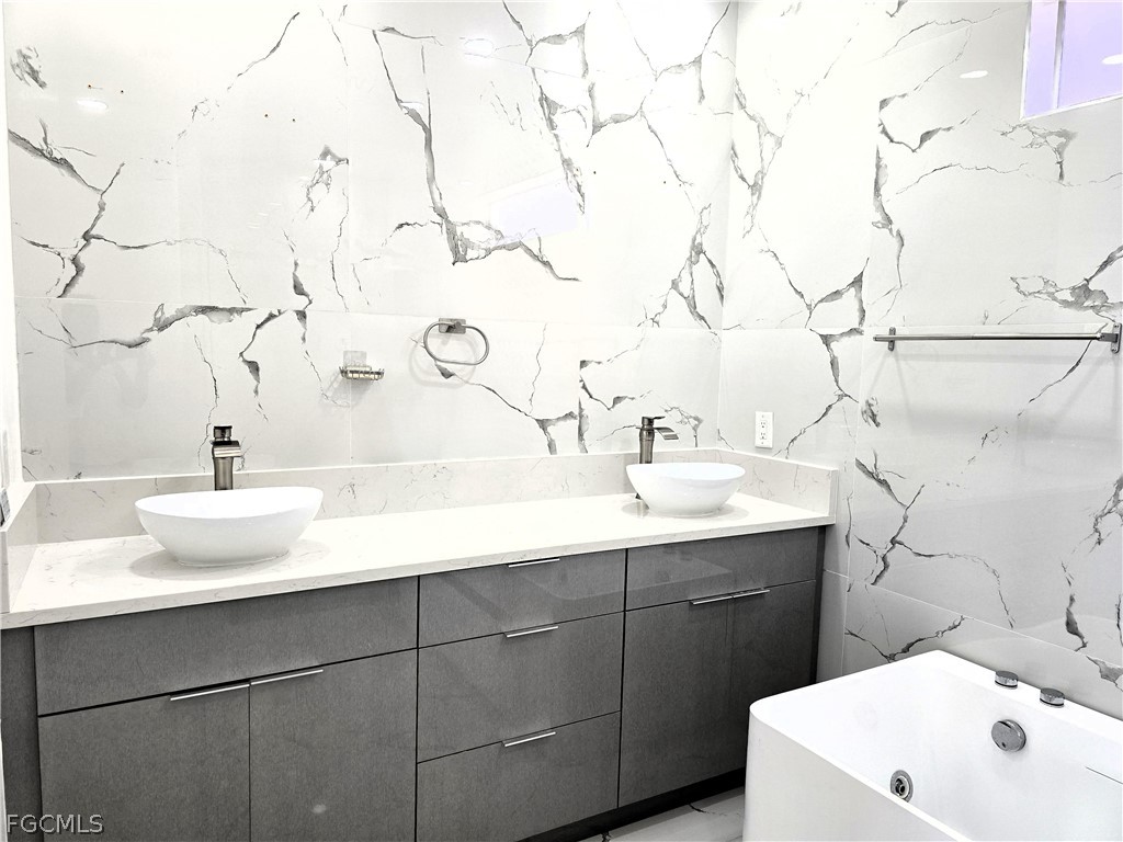 Designed with upscale finishes throughout, this home boasts soaring high ceilings, porcelain tile flooring, and premium details in every room. The chef’s kitchen is a standout with custom cabinetry, built-in double wall ovens, and an expansive layout perfect for entertaining. The primary suite offers a spa-like retreat complete with a Jacuzzi soaking tub, separate walk-in shower, dual vanities, and a large walk-in closet.