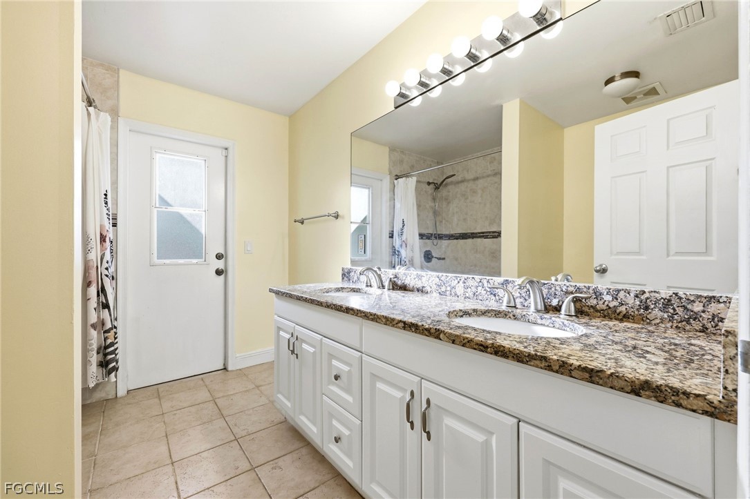 The main suite includes newer flooring, a fully renovated bath with double vanities, a walk in tile shower, soaking tub, and a large walk in closet.